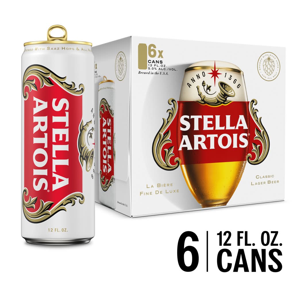 Welcome to the world of Stella Artois, a premium beer that honors a rich heritage spanning over 600 years. Crafted in true Belgian style, Stella Artois is a masterpiece of brewing expertise. With its distinctive golden hue and crisp, clean taste, this Belgian Style Beer offers a delightful balance of malt sweetness and hop bitterness. Whether you're celebrating a special occasion or simply unwinding after a long day, Stella Artois is the perfect companion. Its smooth, refreshing flavor pairs well with a variety of dishes, from gourmet cheese platters to hearty seafood meals. Indulge in the alcoholic beverage that has stood the test of time and become synonymous with elegance and sophistication. Raise your beer glass and toast to the timeless allure of Stella Artois – an exquisite beer that never fails to impress. Belgian style Lager. 5.0% Alcohol by Volume. • Pack size: 6 • Alcohol by volume: 5% • Stella Artois, St. Louis, MO, • Packaging: Reusable