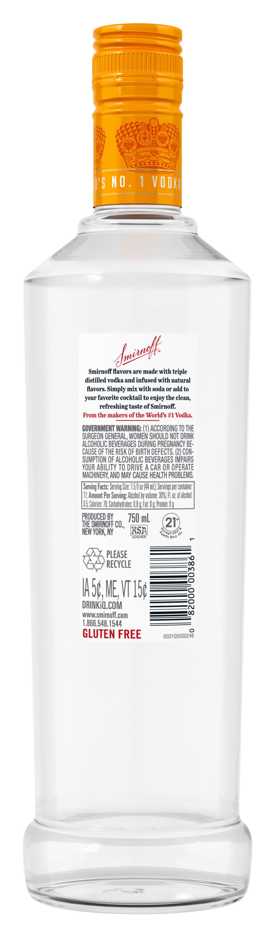Smirnoff Vodka, Orange (750 ml)