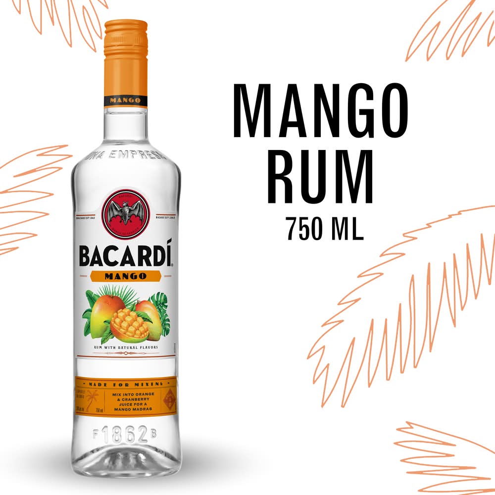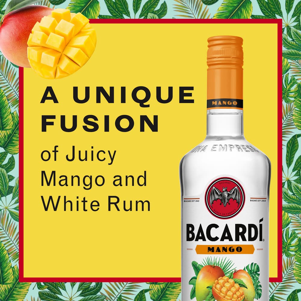 A fusion of juicy with an unmistakable citrus zing of orange gives BACARD Mango rum its unique character and flavor. Once you've tasted it, you will never forget it. • Alcohol by volume: 35% • Bacardi, Jacksonville, FL 32218