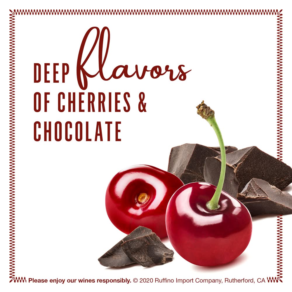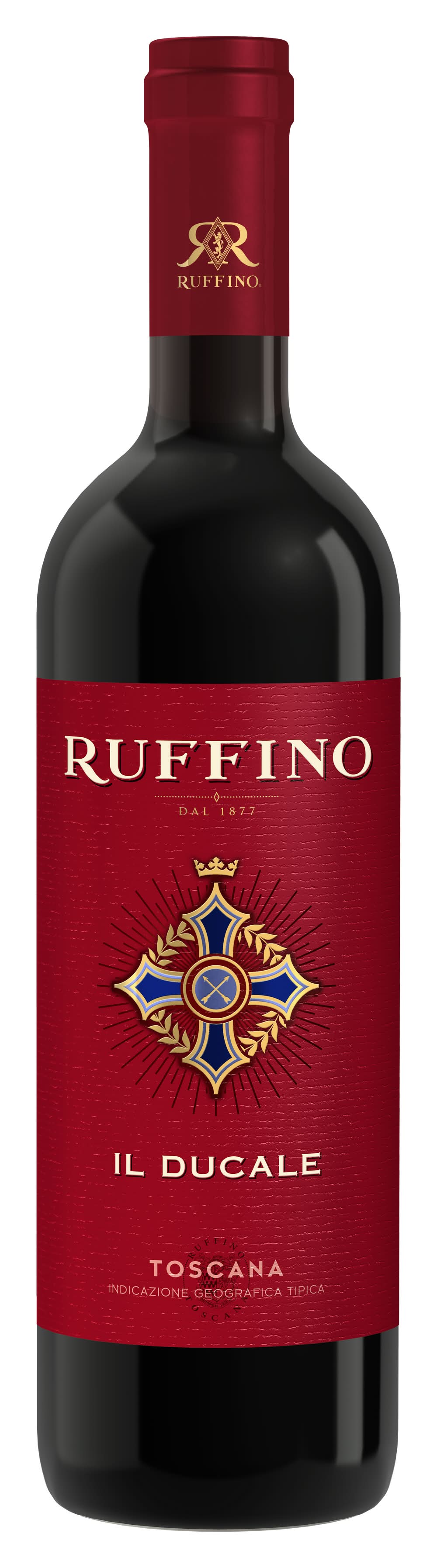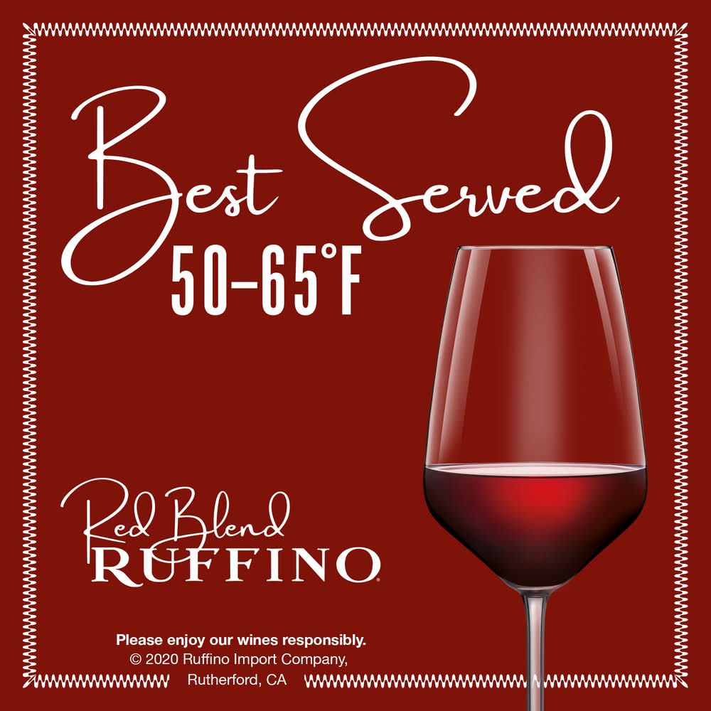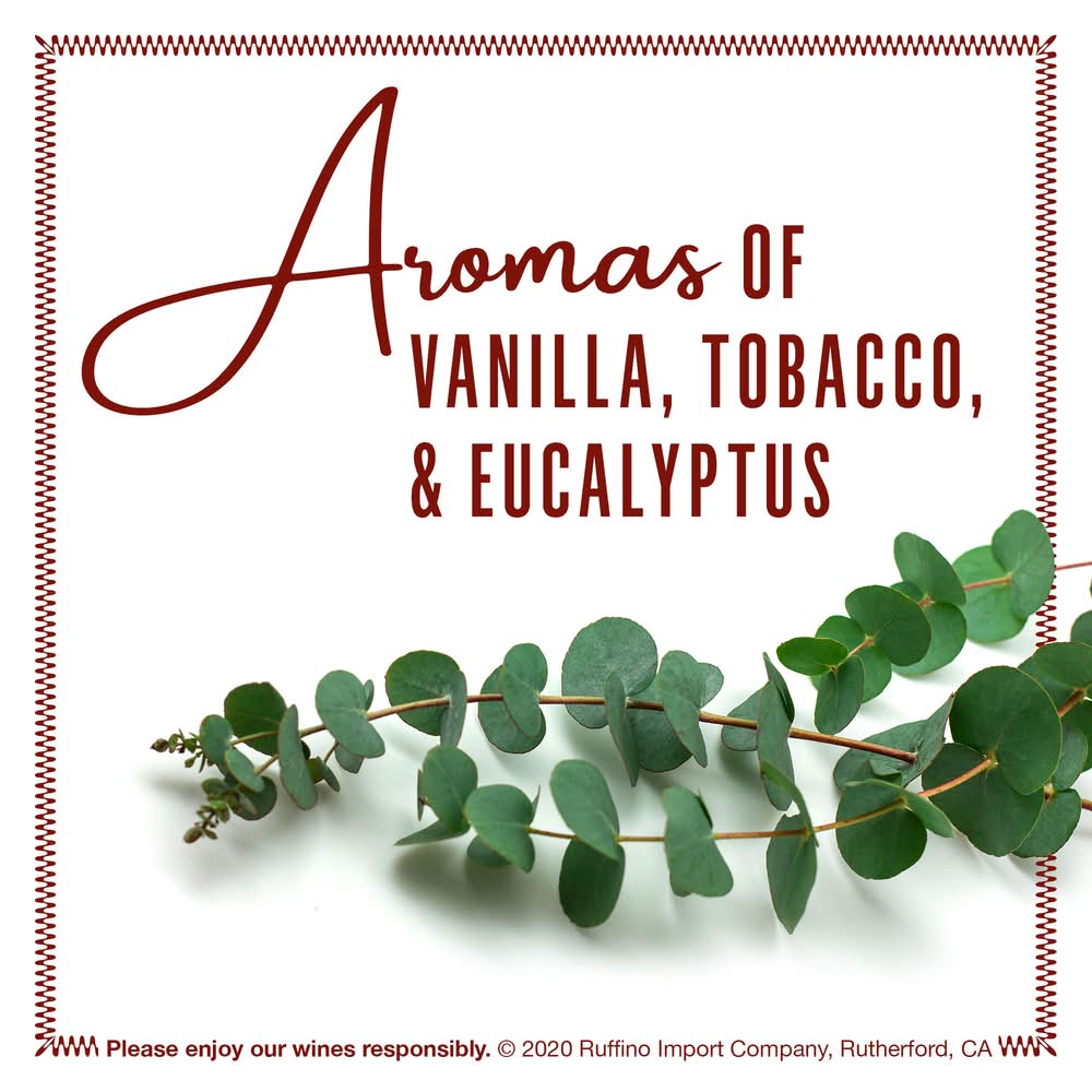 Ruffino Il Ducale Toscana IGT Rosso Italian Red Wine is a well-balanced, full-bodied, red blend wine with a pleasant freshness. An elegant red blend sourced from the most prestigious winegrowing regions of Tuscany, this fine wine artfully combines the refinement of Tuscan winemaking with a modern, fruit-driven style. Opening with aromas of vanilla, tobacco, eucalyptus, and spice, each glass of wine offers initial bright and fruity notes followed by lush, deep flavors of cherries, chocolate, cassis, and plums. Round, elegant tannins and a lingering finish that leaves traces of ripe fruits, vanilla, herbs, and black pepper further enhance this red wine blend. This Ruffino wine is the perfect companion for tomato bruschetta, herb-roasted chicken, sun-dried tomato risotto, beef carpaccio, and Parmigiano-Reggiano and Pecorino Romano cheeses. For best taste and quality, store this bottle of wine at room temperature, but serve chilled at 50 to 65 degrees. Please enjoy our wines responsibly. © 2023 Ruffino Import Company, Rutherford, CA Alcohol by volume: 14.5%