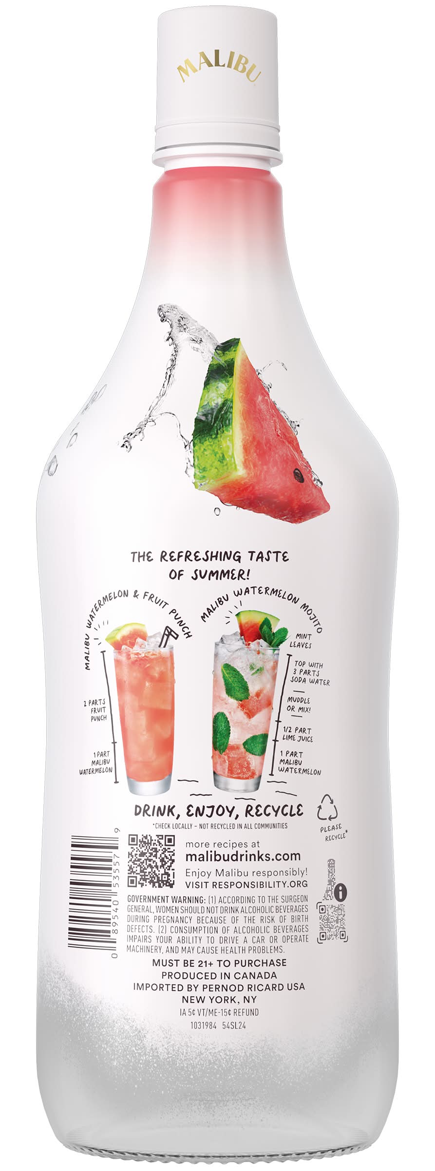 Sip on a slice of summer with Malibu Watermelon! The sunniest spirit for impromptu outdoor hangs and perfect partner for flavorful cocktails, Malibu Watermelon packs a fruity burst of watermelon flavor with notes of smooth, tropical Caribbean Rum. • Flavor: Watermelon • Alcohol by volume: 21%