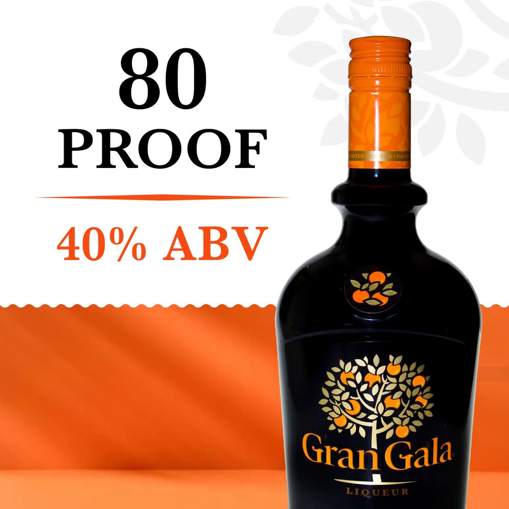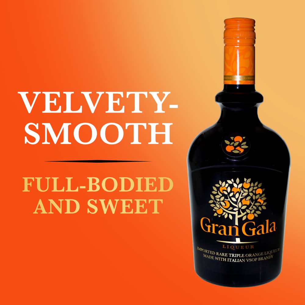 Gran Gala Orange Liqueur offers a rare blend of VSOP Italian brandy infused with the rich and lively flavor of fresh oranges. Gran Gala is steeped in the centuries-old traditions of Italian and French brandy. Full-bodied, sweet and velvety smooth, this orange liqueur starts with the vibrant floral notes and fresh, fruity aroma of Gran Gala Very Special, wrapping up with a hint of almonds on a background of gentle oak. At 40% alcohol by volume, this orange liqueur is ideal for sipping neat, serving on the rocks, or adding to your favorite cocktails and cordials, such as a Margarita or Cosmopolitan. • Flavor: Triple orange • Alcohol by volume: 40%