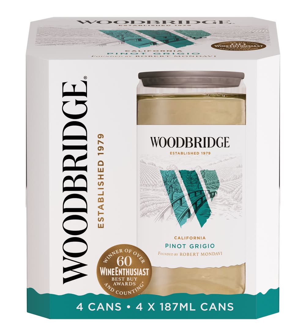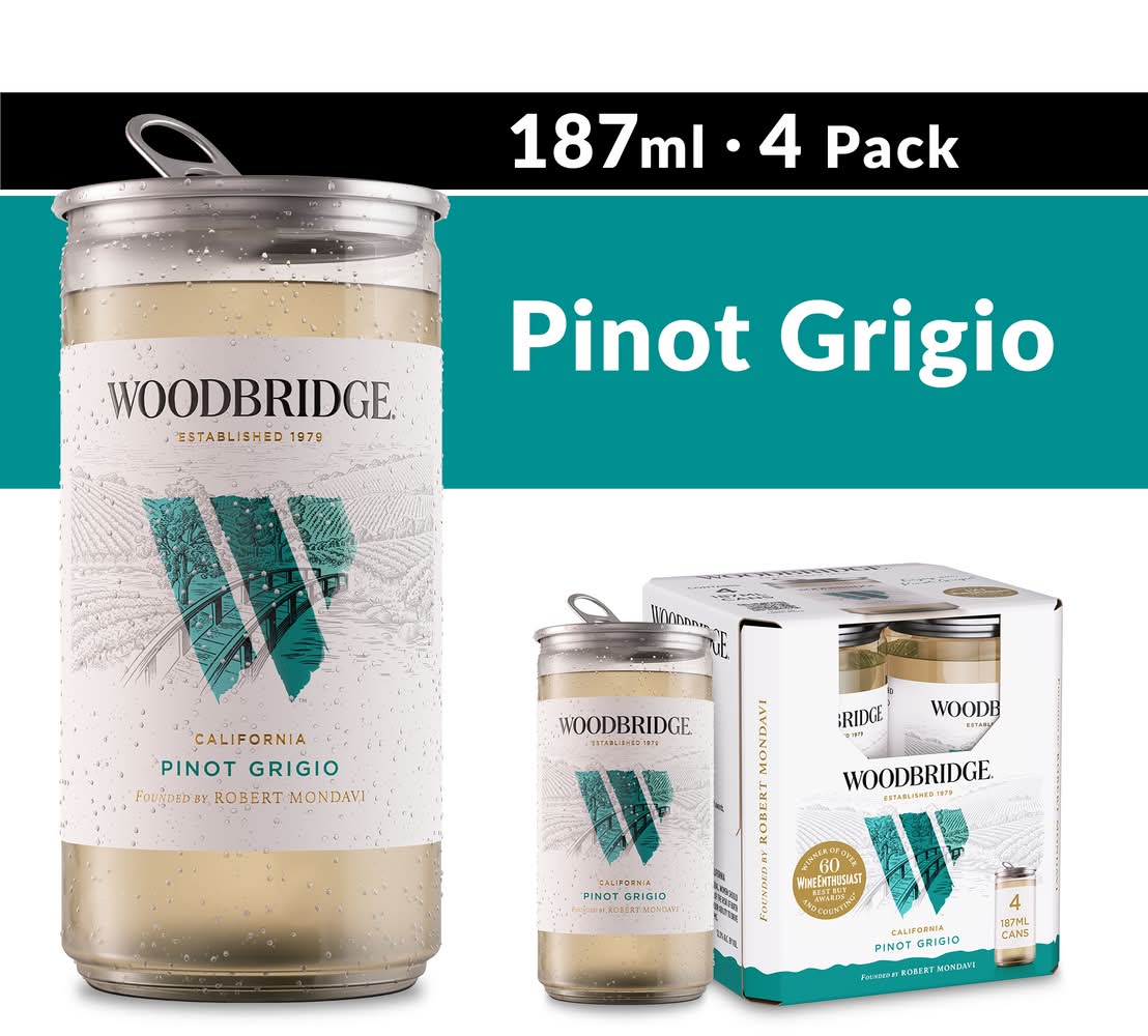 Woodbridge Pinot Grigio White Wine is light, crisp, and well-rounded, displaying juicy citrus and lime flavors. This portable, California wine pairs easily with most dishes. • Pack size: 4 • Alcohol by volume: 12%