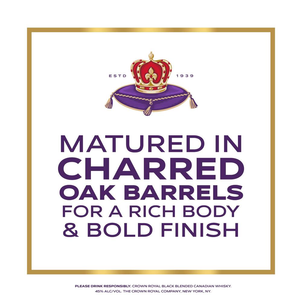 Unwind in luxury with a glass of Crown Royal Black Blended Canadian Whisky. With a creamy texture and notes of dried fruit, our Canadian whisky provides a refined flavor that enhances any cocktail party or celebration. With the signature smoothness of traditional Crown Royal, our black whisky is matured in charred oak barrels and blended at a higher proof for a richer body and bold finish. Perfect for a Black Whisky Manhattan. Crown Royal Black Blended Canadian Whisky won a Gold medal at the 2021 San Francisco World Spirits Competition. Includes one 90 proof 375 mL bottle of Black Blended Canadian Whisky. Please drink responsibly. Alcohol by volume: 45%