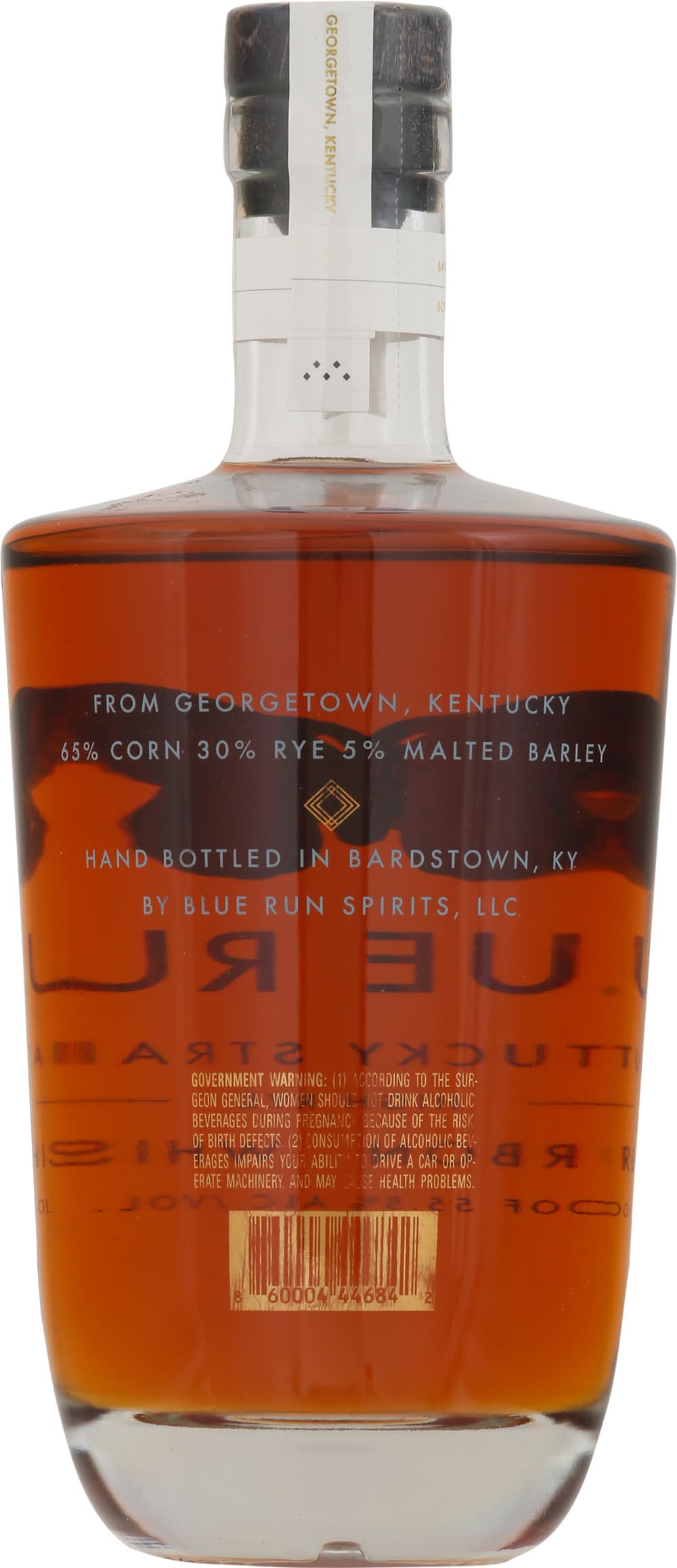 Bourbon is a spirit distilled from a mash bill of 65% corn, 30% rye, and 5% malted barley. It is bottled at 111 proof. Each bottle is hand-filled in Bardstown, Kentucky by Blue Run Spirits, LLC, reflecting the craft and care imbued in its creation. This bourbon hails from the storied region of Georgetown, Kentucky, known for its rich distilling heritage. Alcohol by volume: 55%