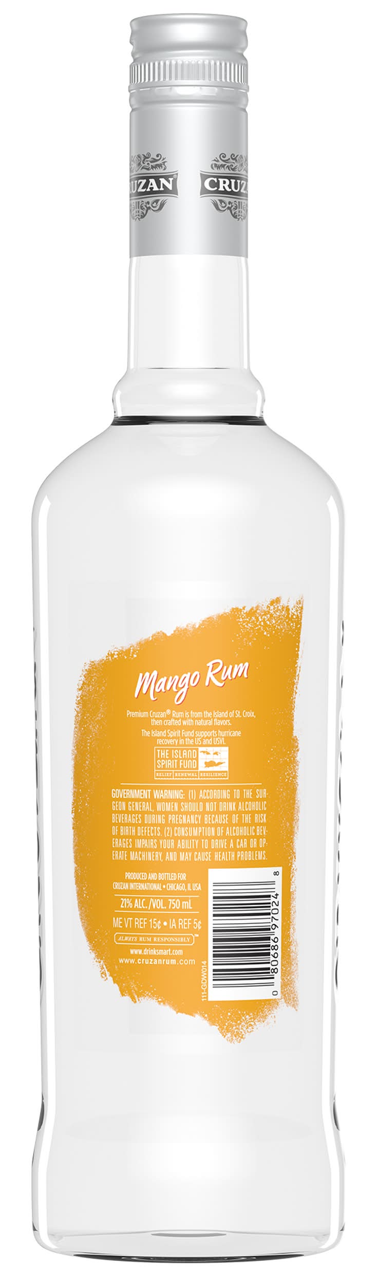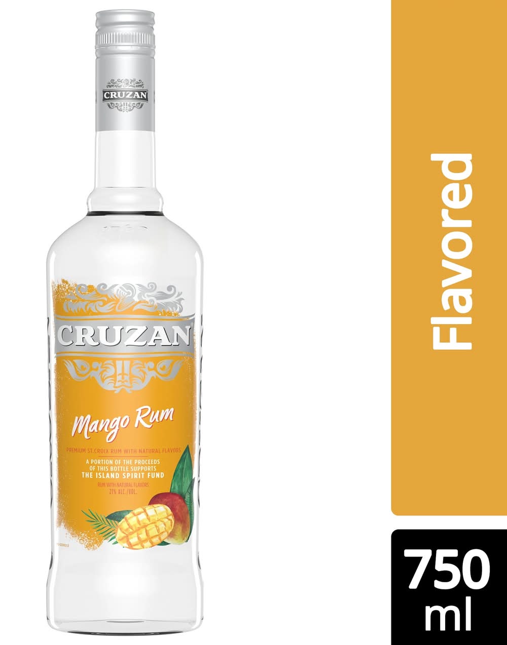 Cruzan Mango Rum delivers the sweet, bold, tropical flavor of ripe mangos. Exceptionally smooth and refreshing on a hot summer day, spend a little one-on-one time with this one. The tropical mango flavor pairs best with fresh fruit juices. For a new twist on a classic, try a Mango Mojito by muddling four chunks of fresh mango with 4-6 mint leaves with a splash of simple syrup; add a dash of freshly squeezed lime juice, one part Cruzan Mango Rum, and ice. Stir and top with soda water and a mint leaf. Based in St. Croix and operated by the Nelthropp family since the early 1800s, every bottle of Cruzan Rum captures the unique spirit of the island. • Flavor: Mango • Alcohol by volume: 21%