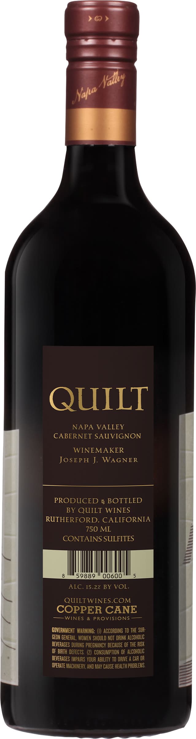 Joseph J. Wagner, winemaker. Copper Cane Wines & Provisions. 30.2 Produced & Bottled by Quilt Wines Rutherford, California. • Alcohol by volume: 15.2% • Quilt Wines, Rutherford, CA