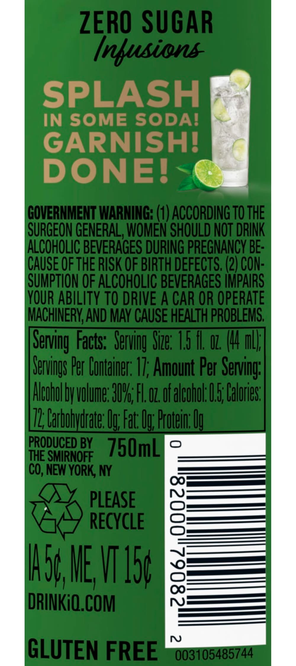 Smirnoff Zero Sugar Infusions Vodka, Cucumber-Lime (750 ml)