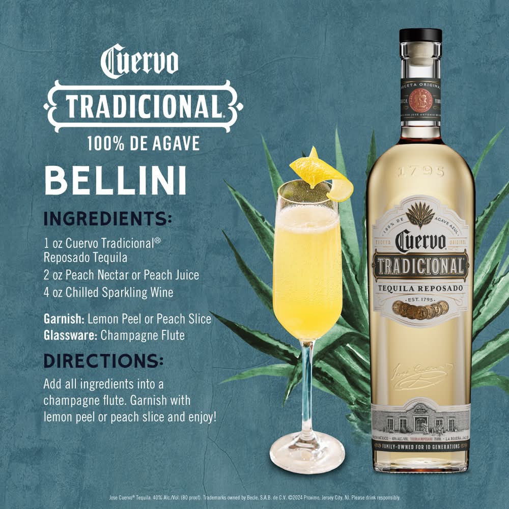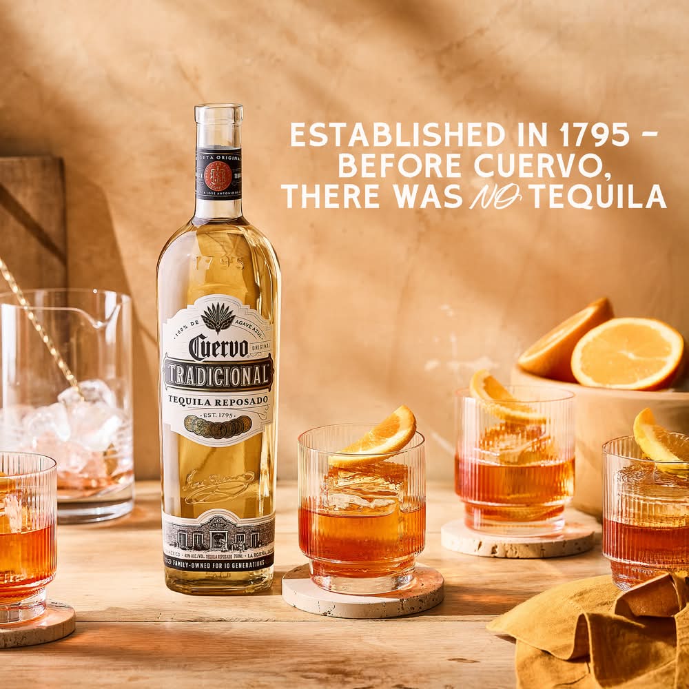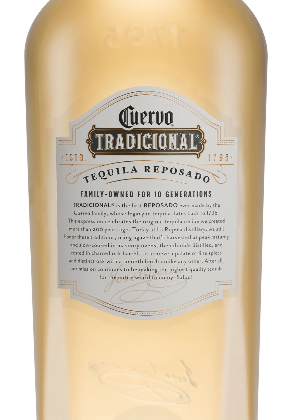 Artisanal Jose Cuervo Tradicional Reposado is distilled from select 100% blue agave rested in charred oak and is very in character. It is light straw in color and has an herbaceous essence of agave. Its flavor is of cooked agave and stewed tropical fruits backed by lingering notes of vanilla, clove, cinnamon, and toffee. Family Estate Grown, Small-Batch Tequila. Tradicional celebrates a family tradition started over 200 years ago. The agave is harvested from the family estate, the largest agave holder in all of Mexico. • Alcohol by volume: 40% • Packaging: Reusable