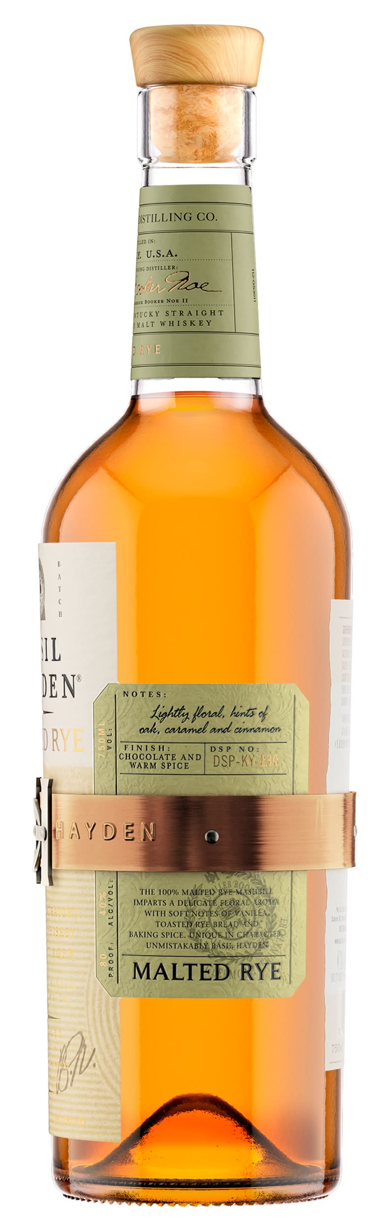 Malted Rye is the latest permanent expression from Basil Hayden. Basil Hayden Malted Rye introduces an entirely new flavor profile within the Rye category. Delivering an unexpected softness and approachability, its delicate sweet and floral notes lead into a taste profile of cinnamon, sweet vanilla and toasted rye bread. The finish brings delicate notes of chocolate and warm spice. Serve neat to experience its complexity, and enjoy as the 'first sip' of any occasion. Basil Hayden Malted Rye Whiskey has a unique flavor due to the malting process. This gently transforms the spicy character that rye is known for, mellowing it out. The mellow spice is complemented by gentle sweet and floral notes. Launched in 1992, Basil Hayden is one of four brands in Booker Noe's Small Batch Bourbon Collection. The collection revolutionized the bourbon industry, attracting a new generation of fans while cementing Booker's reputation as a visionary distiller. Alcohol by volume: 40%