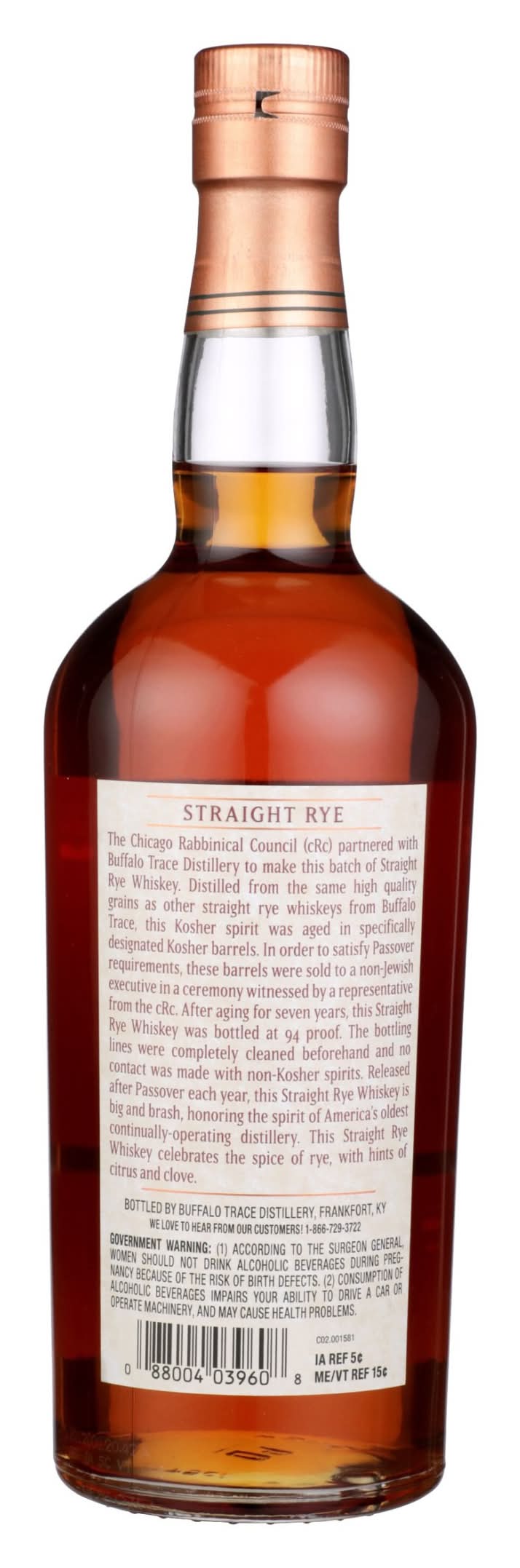 Buffalo Trace Kosher Kentucky Straight Rye Whiskey (750 ml)