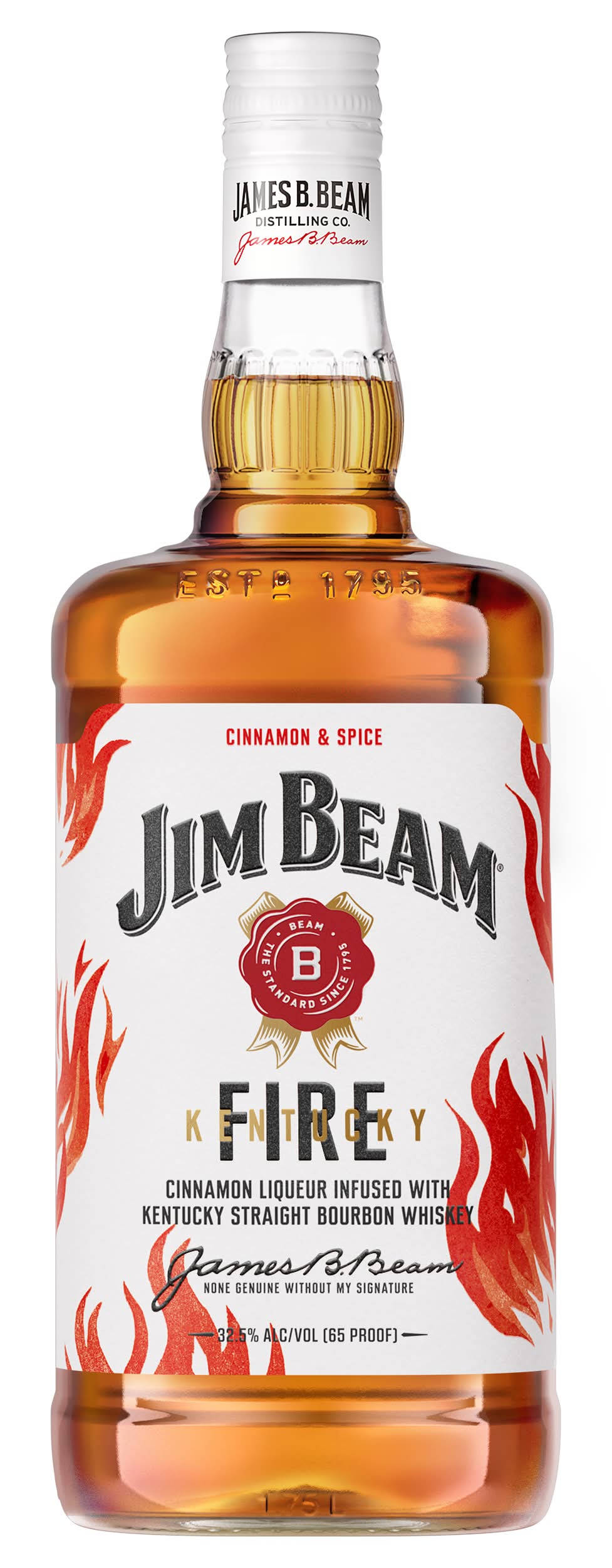 Jim Beam Kentucky Fire is rooted in Jim Beam's bourbon heritage, but delivers a new, fiery, sweet kick backed by the mellow smokiness of bourbon whiskey. If you're looking to spice things up, Jim Beam Kentucky Fire is just the ticket. Our distillers created this signature mix of red-hot cinnamon liqueur and the world's finest Kentucky Straight Bourbon Whiskey. With a fiery hot candied cinnamon flavor and notes of oaky, smooth bourbon fire up any drink with a touch of sweet spice. Plus, it makes for one heck of a shot. • Flavor: Bourbon • Alcohol by volume: 32.5%
