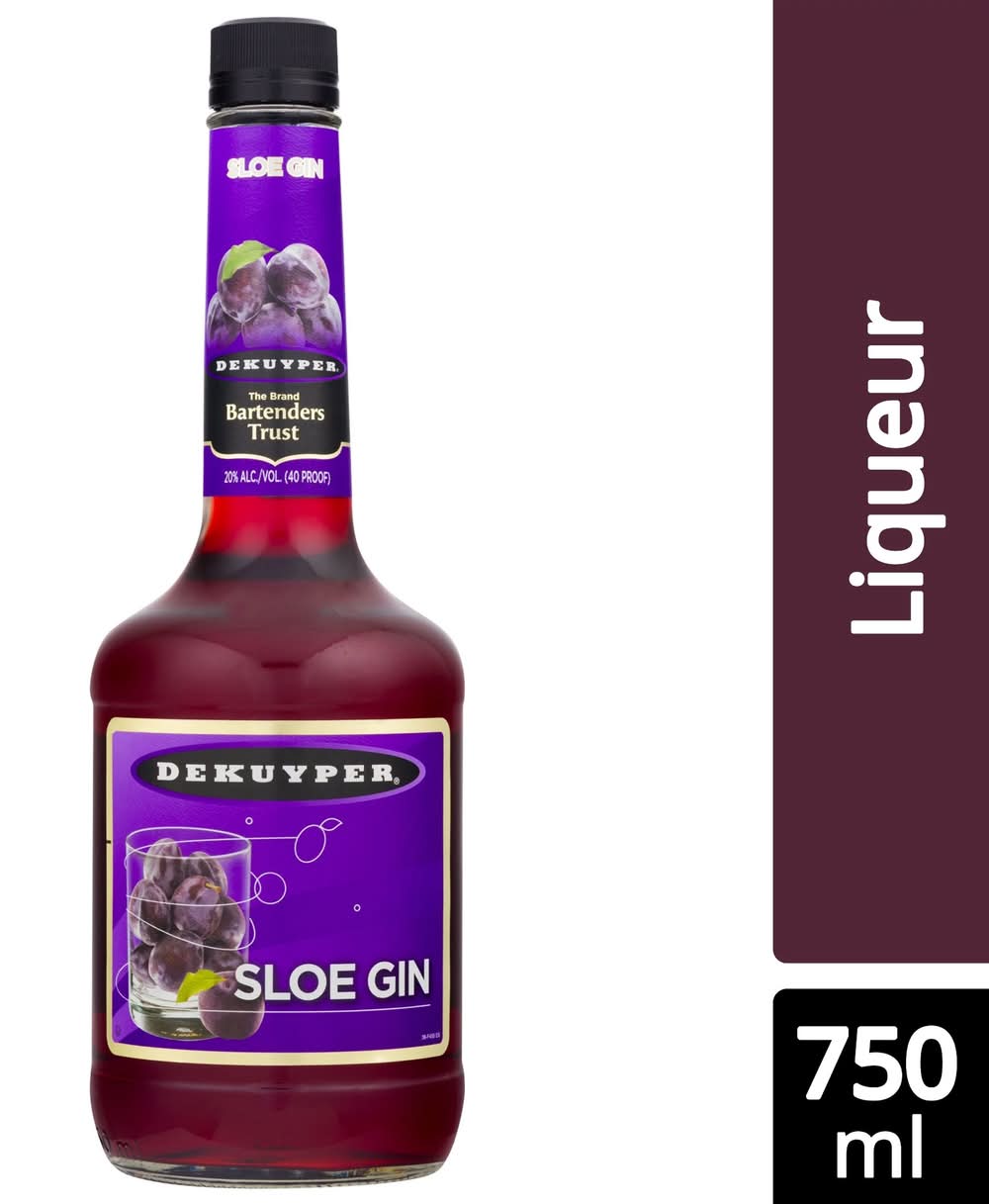 Brighten any beverage with the distinctive fruit flavor of DeKuyper Sloe Gin. Bright red and bittersweet, this liqueur is the must-have ingredient in a classic Sloe Gin Fizz. Plum-like from its signature ingredient, this versatile ingredient pairs wonderfully with almond flavors. With a heritage dating back more than 300 years, DeKuyper Cordials & Liqueurs continues to be on the cutting edge of the spirits industry. DeKuyper's evolution has been successful through the combination of its rich, traditional expertise and modern innovation, creating mixable and versatile cordials, liqueurs, crèmes, brandies and schnapps made from the world's finest ingredients. DeKuyper has been the brand bartenders trust to add color, flavor and fun to any cocktail. Alcohol by volume: 20%