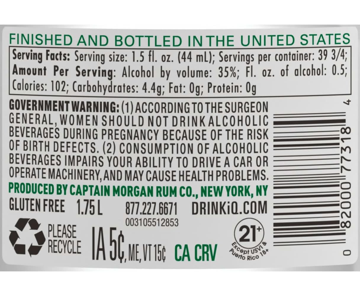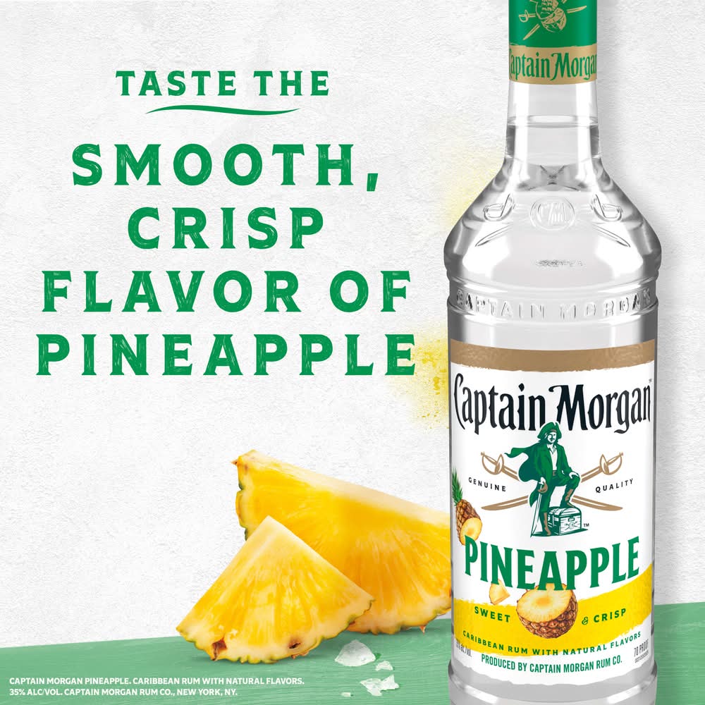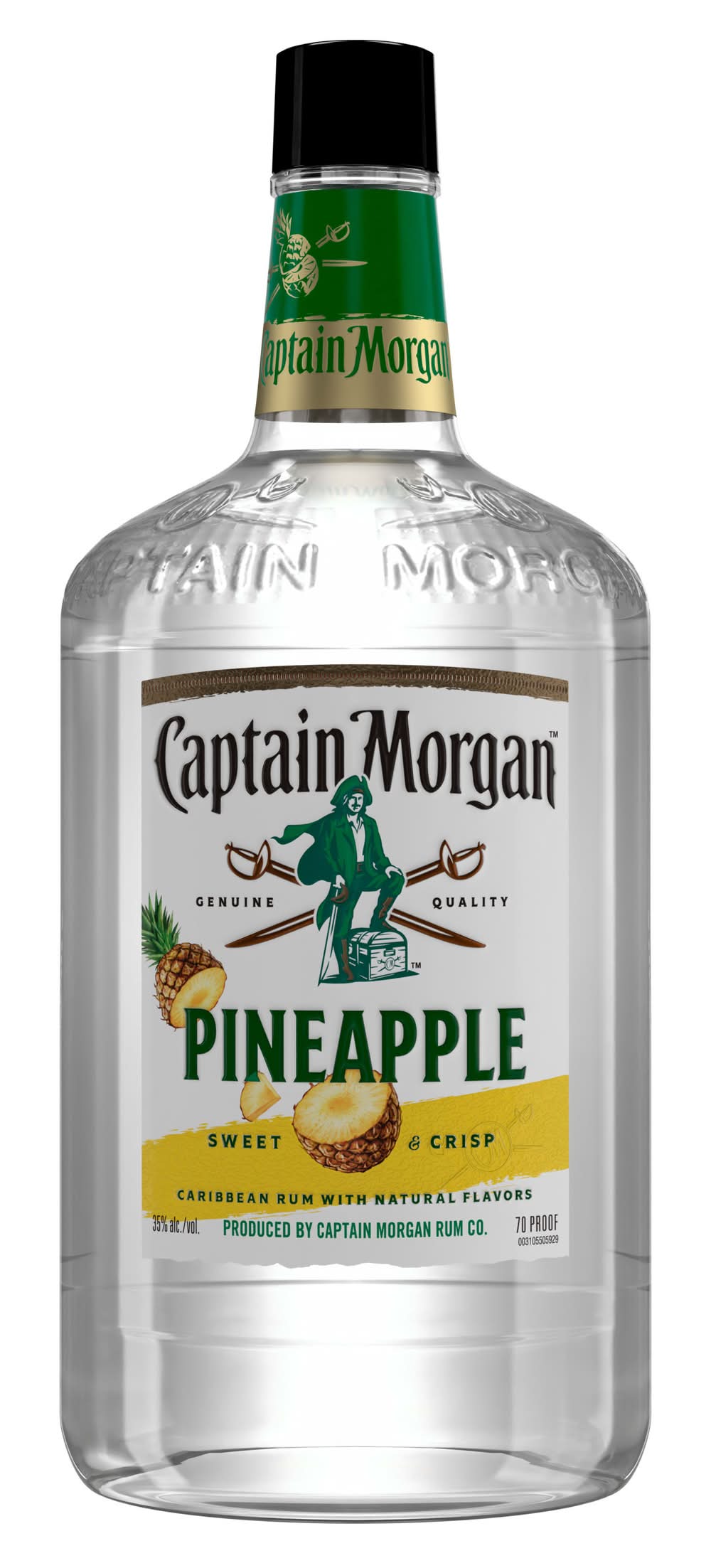 Captain Morgan Pineapple is fruity and ripe for splashing into tasty mixers and colorful cocktails. This 70 proof Captain Morgan Pineapple is best enjoyed at a backyard BBQ with all the crew. Dash into a classic rum punch recipe for an even fruitier twist or keep it breezy with a simple Captain Morgan Pineapple and Pineapple Juice - for those who like their pineapple with a side of pineapple. Includes one 70 proof 1.75 L bottle of Captain Morgan Pineapple (Caribbean Rum with Natural Flavors). Alcohol by volume: 35%