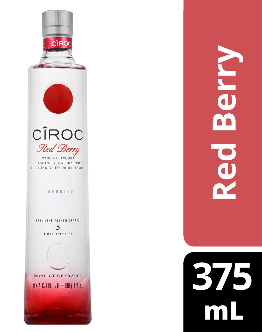 CIROC Red Berry is a rich tasting spirit made with vodka distilled five times from fine French grapes, finished in a tailor-made copper pot still in Southern France. This spirit is masterfully infused with a distinctive blend of raspberry, strawberry and other natural flavors, resulting in a taste experience that is lusciously different and elegantly smooth. Perfect for any vodka soda. Includes one 70 proof bottle of CIROC Red Berry. Please drink responsibly. • Flavor: Red berry • Alcohol by volume: 35% • Packaging: Reusable