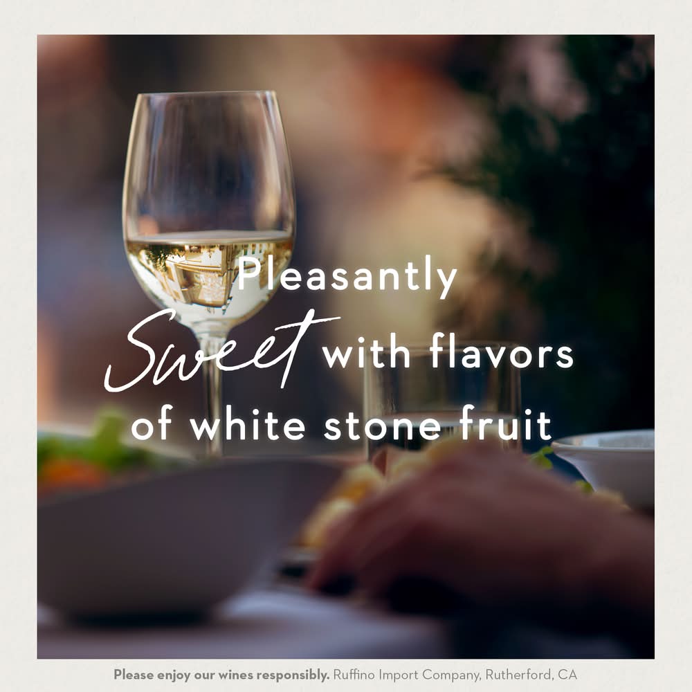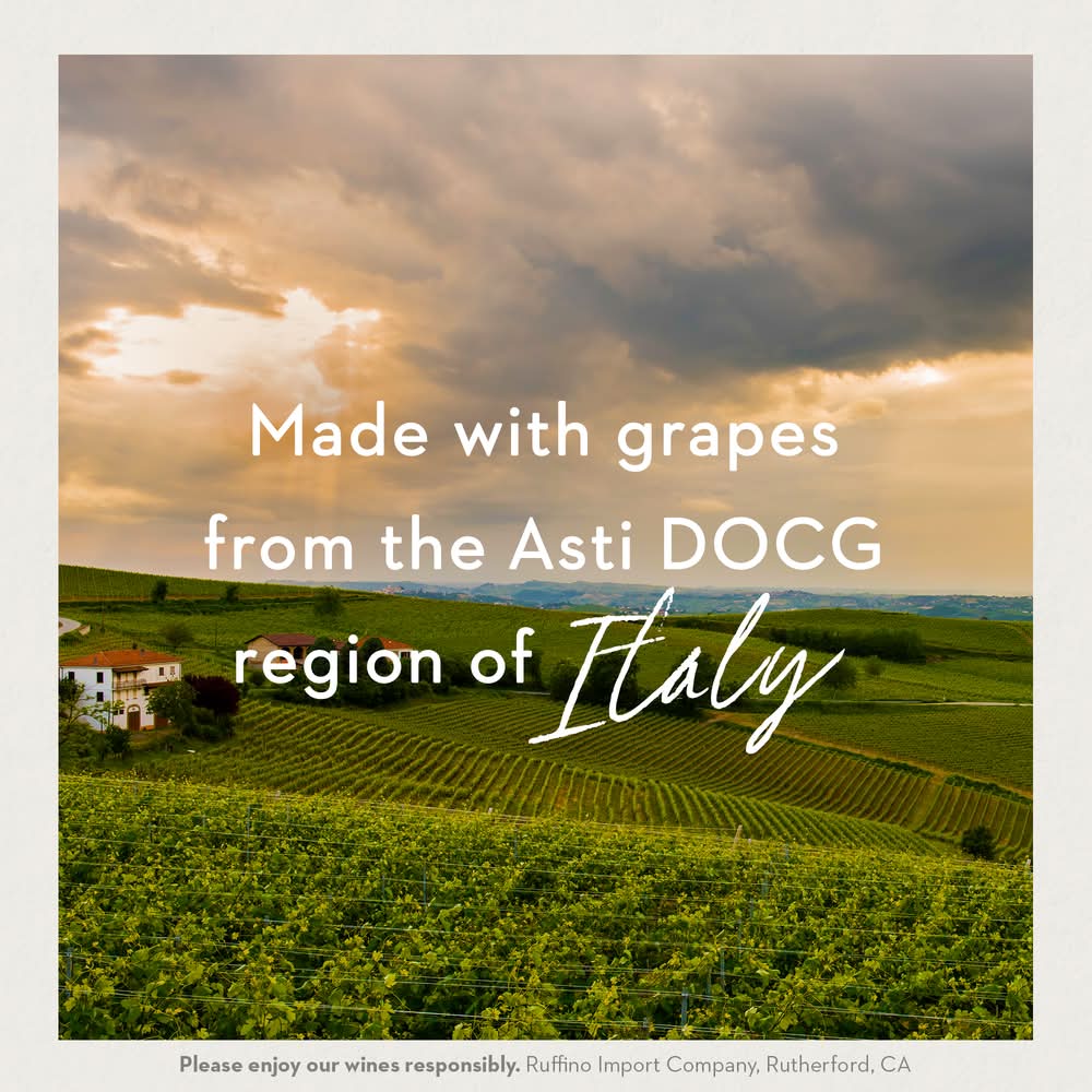 Ruffino Moscato d'Asti Italian Sparkling White Wine offers hints of citrus fruit, notes of peach and orange blossoms, and flavors of sage and fresh white stone fruit on the palate. • Alcohol by volume: 6% • 2011
