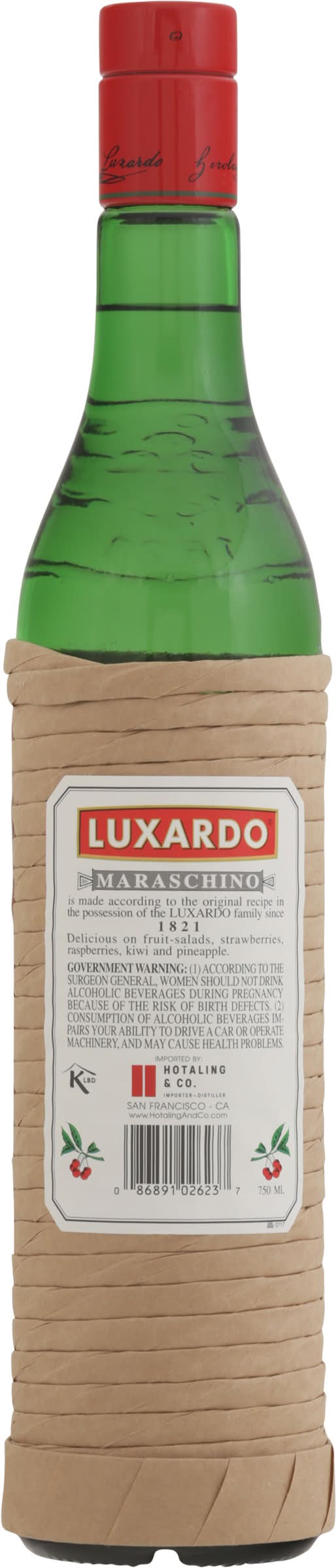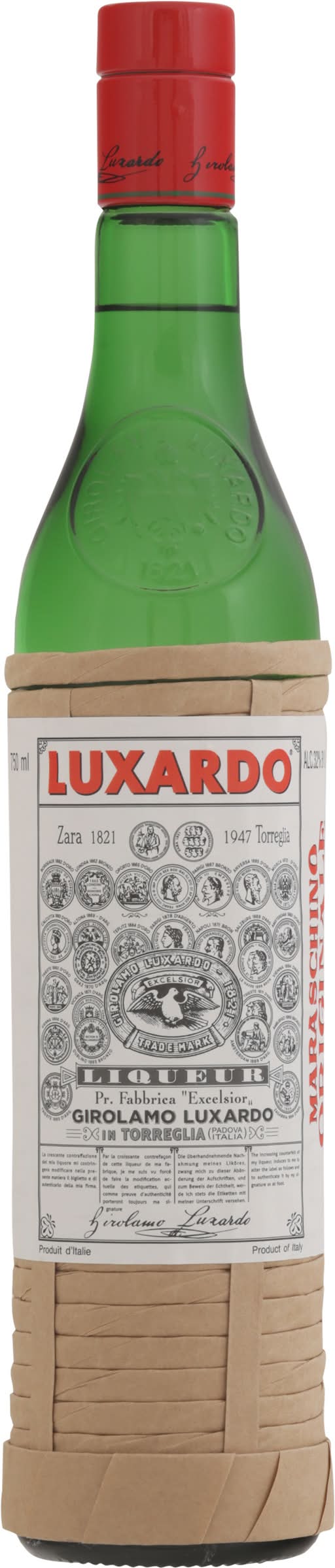 Zara 1821. 1947 Torreglia. Girolamo Luxardo. Excelsior. Liqueur. Pr. Fabbrica Excelsior. Maraschino is made according to the original recipe in the possession of the Luxardo family since. Delicious on fruit-salads, strawberries, raspberries, kiwi and pineapple. • Alcohol by volume: 32% • Anchor Distilling Company, San Francisco, CA