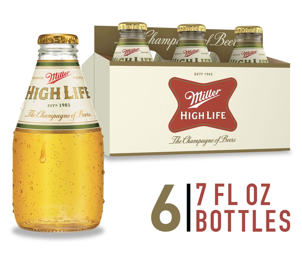 Miller High Life is an American lager beer with the perfect balance of flavor and refreshment. Its crisp, easy-drinking flavor is the epitome of the American lager category with 4.6% ABV. As the Champagne of Beers, it's crisp with a slight sweetness balanced by bitterness and its signature effervescence. It' what American Lager was born to be. This bottled beer case is perfect when you need party drinks or want to stock your bar or pantry with beer bottles. True to its original recipe, Miller High Life beer is brewed with a proprietary blend of malted barley, Galena hops from the Pacific Northwest, and Miller yeast for a gorgeous golden color. Miller High Life is the classic American beer for cookouts, so pair it with everyday favorite fare such as burgers, hot dogs, barbecue, and wings. For over 100 years, Miller High Life has been known as the Champagne of Beers, brewed to be the best of its kind. • Pack size: 6 • Alcohol by volume: 4.6%
