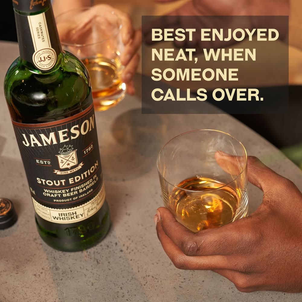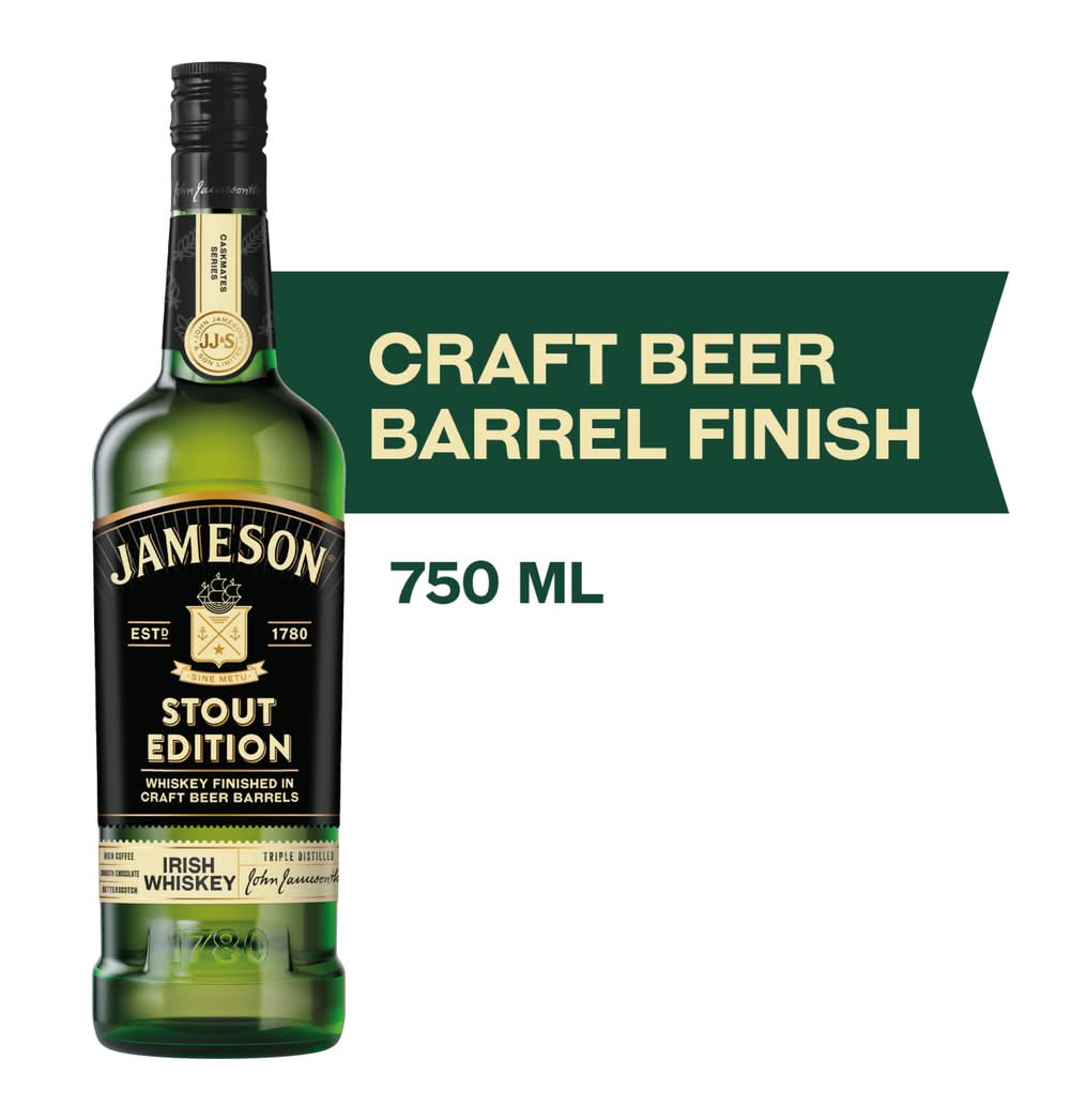 Jameson Caskmates Stout Edition masterfully combines the best of blended Irish whiskey and Irish craft beer. This spirit begins as Jameson's classic whiskey, and then ages in craft beer-seasoned barrels for a smooth and rich finish. Alcohol by volume: 40%