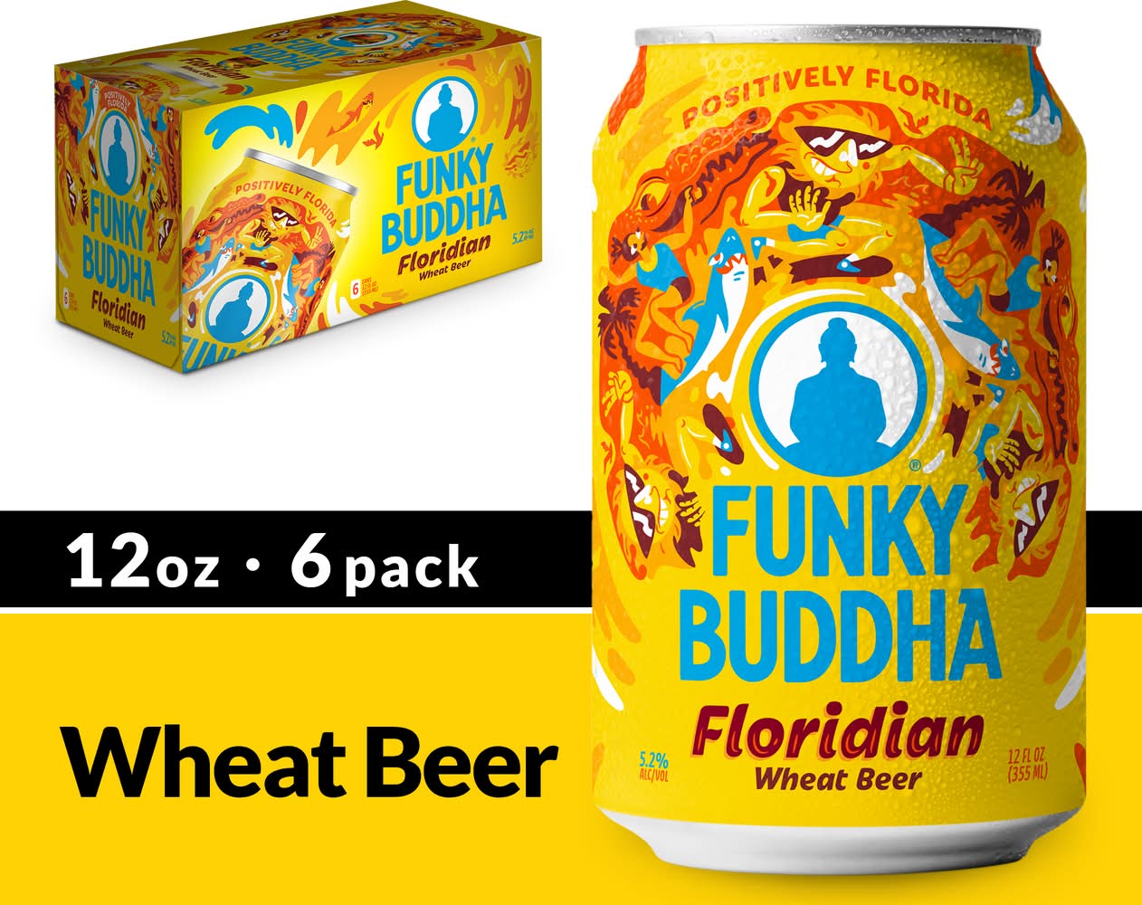 Wheat Craft Beer • Pack size: 6 • Alcohol by volume: 5.2% • Funky Buddha Brewery, 1201 NE 98th Street Oakland Park, FL