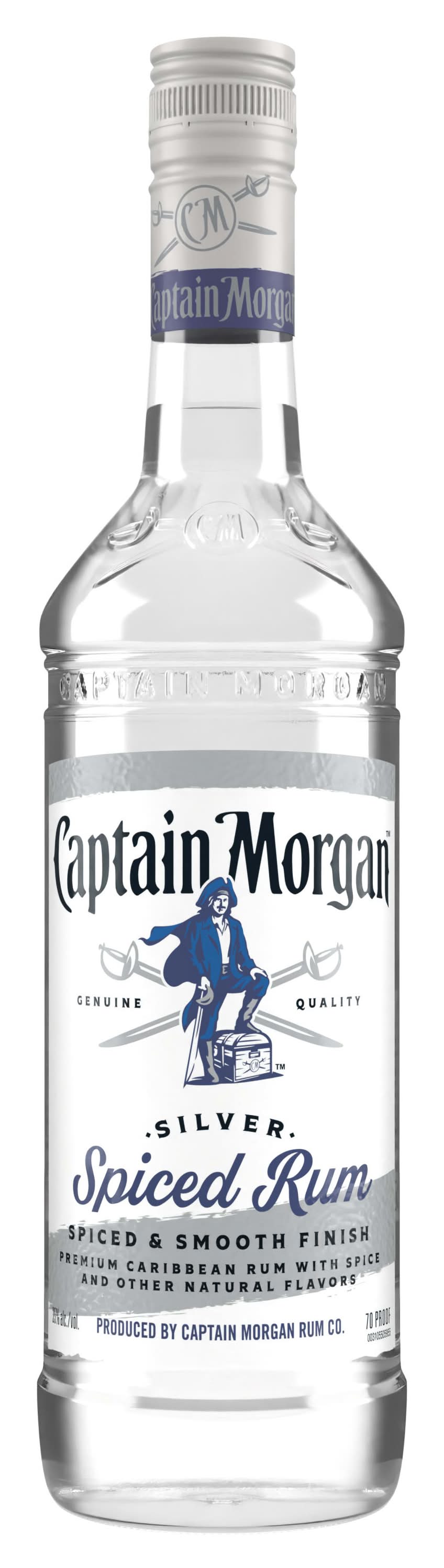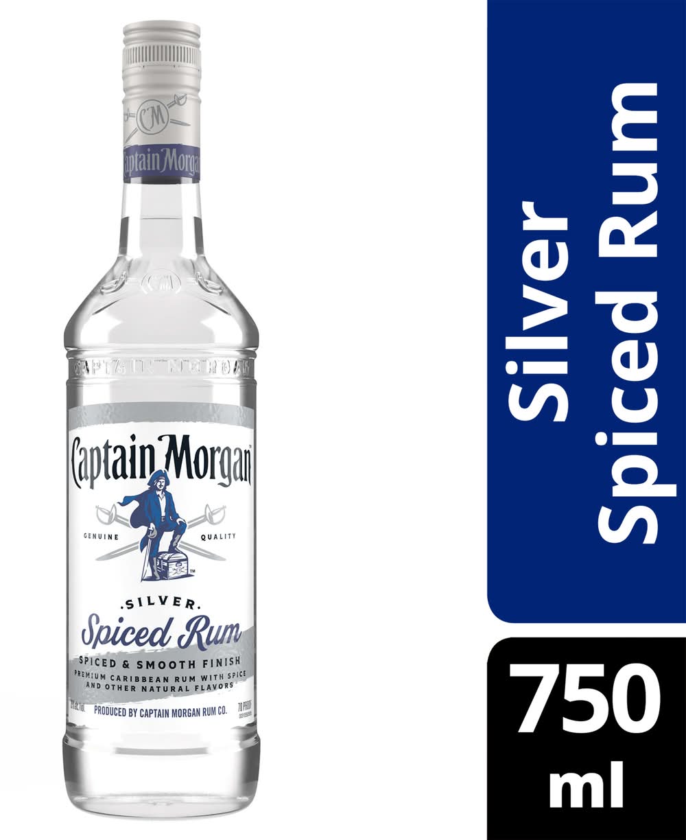 For smooth and sweet flavor worthy of the Captain’s quarters, only Captain Morgan Silver Spiced Rum hits the mark. Whether in a white rum cocktail or on the rocks, this light rum is ready for wherever the trade winds blow. From the keel to the crow’s nest, no other tropical rum features as perfect of a vanilla-spice blend. So go ahead and spice up that cola, master your mojito recipe, or craft some classic rum cocktails for your crew. With Captain Morgan Silver Spiced Rum, you can expect smooth sailing with every sip. Includes one 70 proof 750 mL bottle of Captain Morgan Silver Spiced Rum. Alcohol by volume: 35%