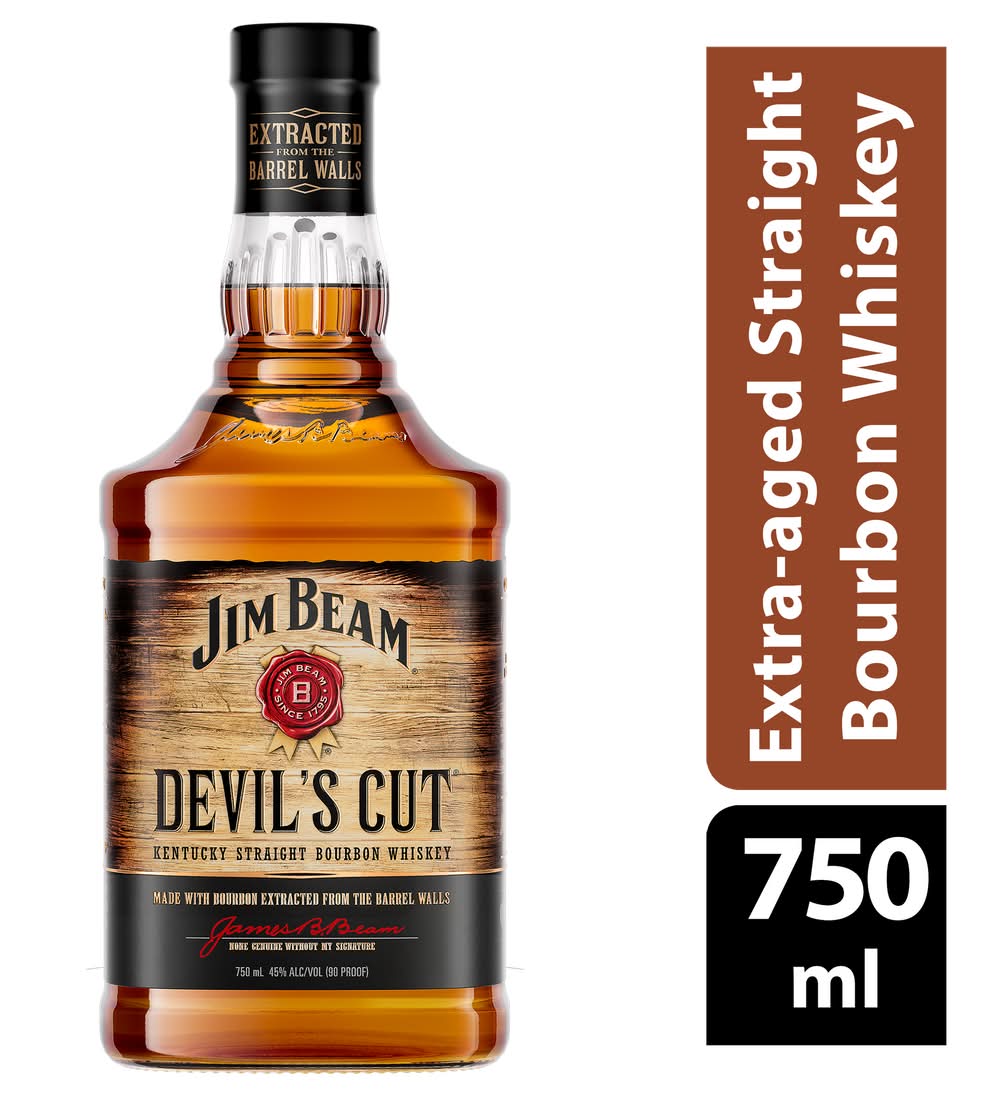 Unleash the bold spirit of Jim Beam Devil's Cut, a premium bourbon with depth and complexity that comes from liquid extracted from inside the barrel wood. We use a proprietary process that extracts the rich bourbon trapped inside the barrel wood. When ready, we then blend this liquid with extra-aged bourbon and bottle it at 90 proof for robust, premium bourbon with deep color, aroma and character. • Alcohol by volume: 45% • Beam Suntory, Frankfort, KY • Packaging: Reusable
