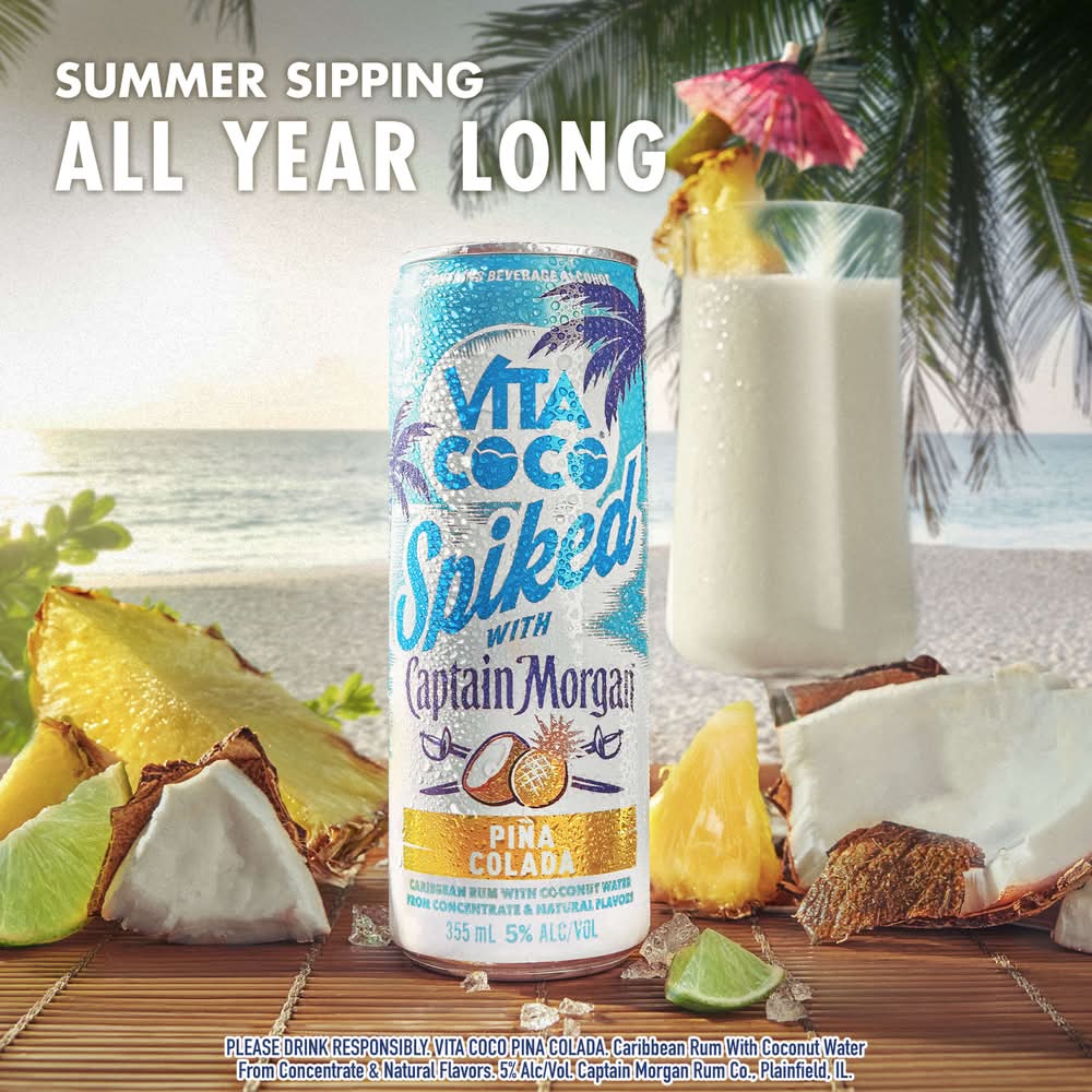an exciting and effortless way to enjoy the taste of tropics, whether you're drinking at the beach or relaxing with friends by the pool with a perfectly balanced blend of Caribbean rum and coconut water, finished with the flavor of fresh ripe pineapple and creamy coconut notes, creating the perfect canned cocktail. For a refreshing-tasting cocktail, simply pour in a glass with ice and a garnish of your choosing. Includes four cans of Vita Coco Spiked with Captain Morgan Pina Colada. Please drink responsibly. • Pack size: 4 • Alcohol by volume: 5%