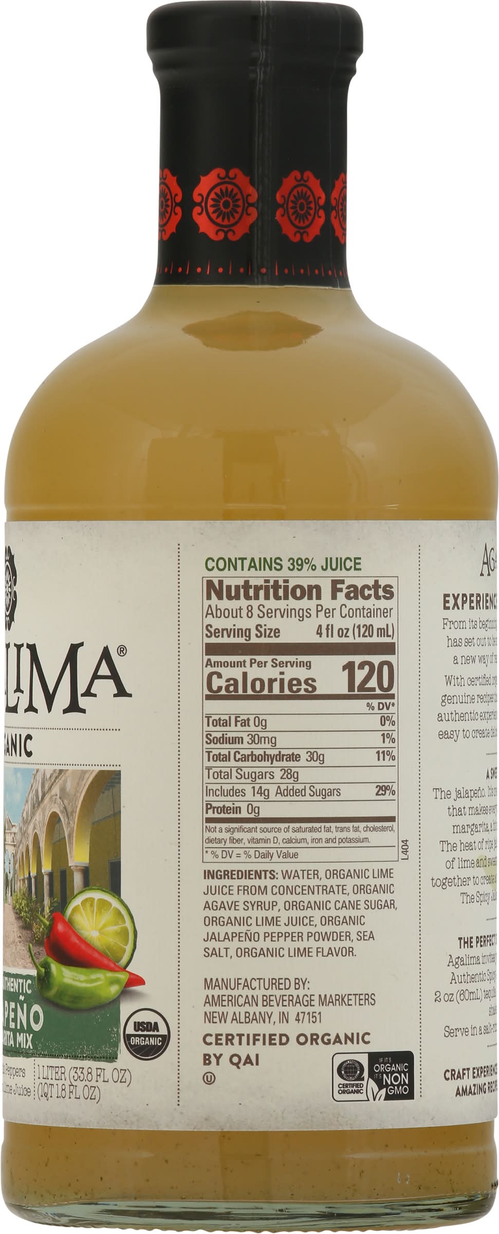 Jalapeno peppers premium lime juice. quality assurance international. If it's organic, experience authentic: from its beginning, a new way of respecting tradition, agalima makes it easy to create delicious, classic cocktails. A sweet heat: the jalapeno. Its one of those ingredients that makes everything, especially a margarita, a bit more interesting. the heat of ripe jalapenos, the tartness of lime and sweetness of agave come together to create a contemporary classic. the spicy jalapeno margarita. a commitment to classic cocktails demands an abundance of premium fruit juice. Flavor: Jalapeno mix