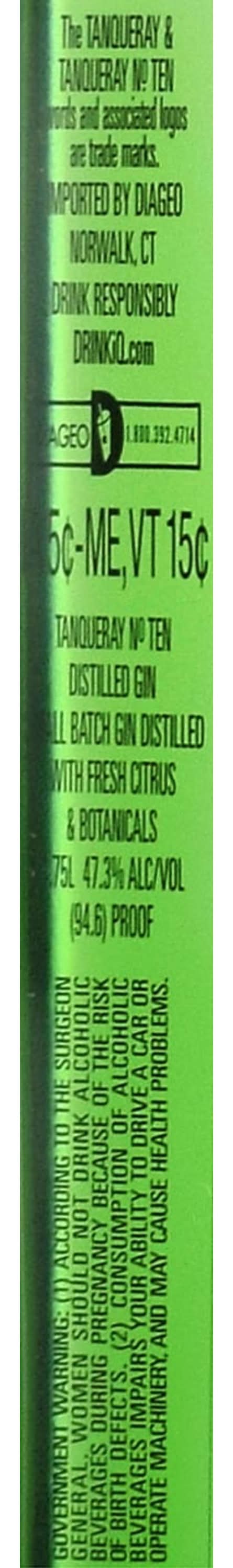 Distilled to the premium standards of Tanqueray Gin, the heart of Tanqueray No. TEN Gin comes from the “Tiny Ten” copper pot still. Tanqueray No. TEN Gin is distilled using fresh whole citrus fruits. With its unique, full-bodied character and citrus undertone, multi-award-winning Tanqueray No. TEN Gin is a perennial favorite among passionate bartenders. Perfect for a classic gin and tonic cocktail. Includes one 94.6 proof 1 L bottle of Tanqueray No. TEN Gin. Please drink responsibly. Alcohol by volume: 47.3%