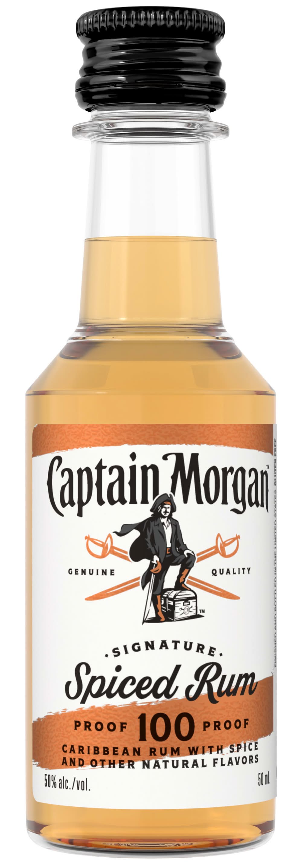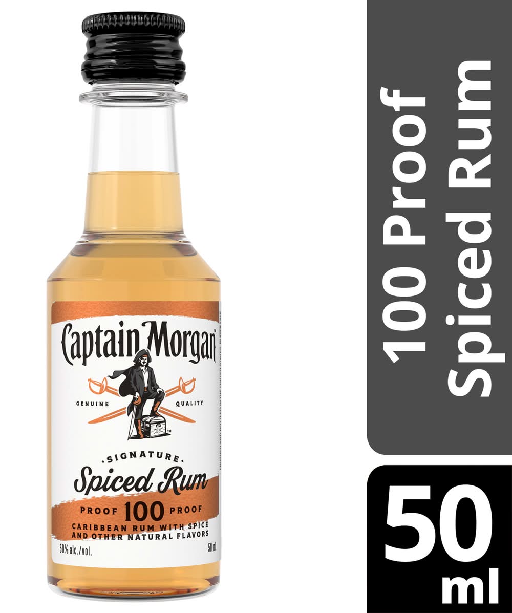 Spice it up with Captain Morgan 100 Proof Spiced Rum. This blend of Caribbean rums is crafted with spice to bring out the intensity of the liquid with a noticeable smoothness and mellow taste. Our 100 Proof Captain Morgan Spiced Rum can be sipped neat, on the rocks or with your favorite mixed drink. Simply mix with cola and pour over ice for a signature Captain & Cola cocktail. Includes one 50 mL bottle of Captain Morgan 100 Proof Spiced Rum. Drink responsibly, Captain’s Orders! Alcohol by volume: 50%