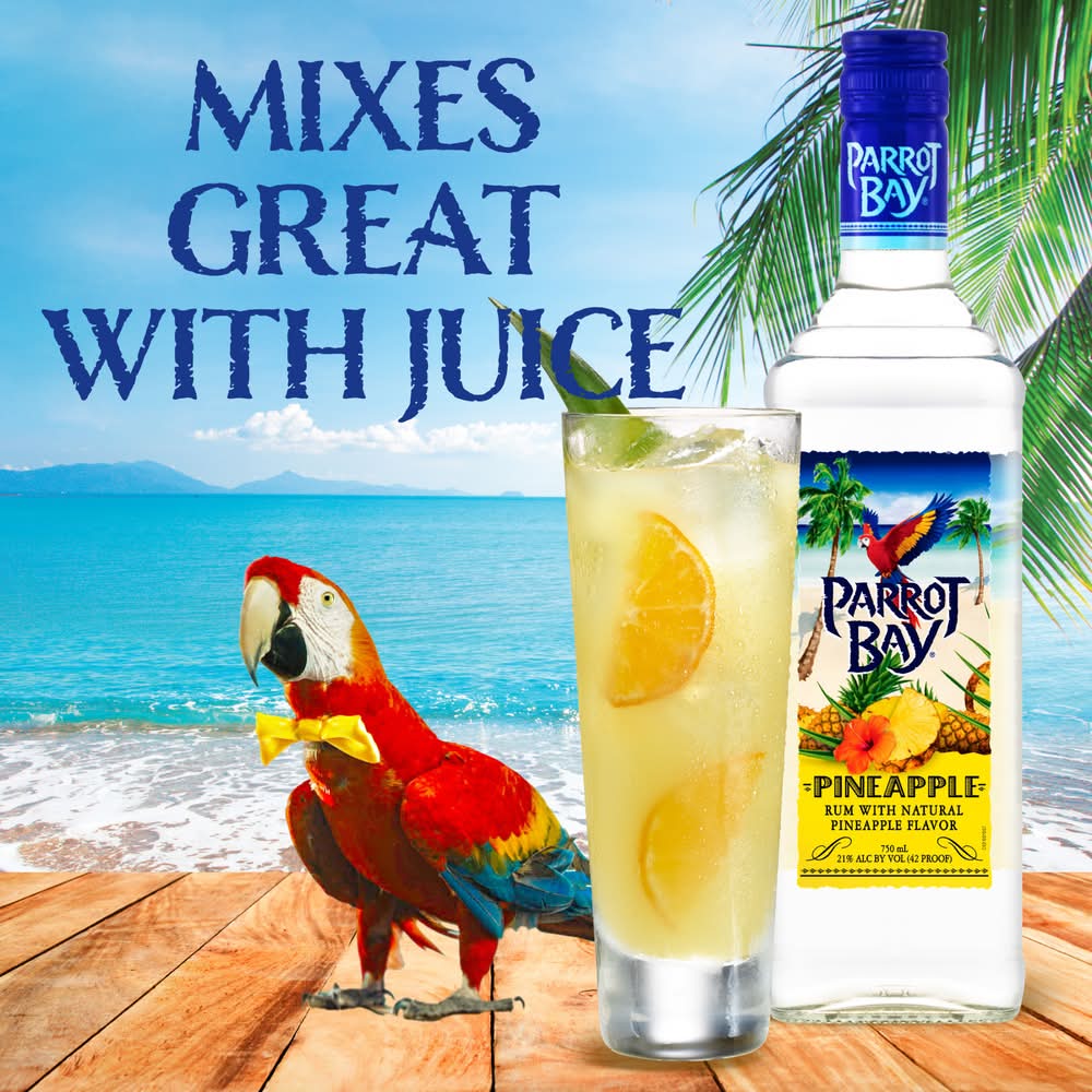 Escape from the day-to-day grind of life with Parrot Bay Pineapple Rum. You can never go wrong with the delectable mixture of rich Caribbean white rum and the sweet, tropical taste of natural pineapple. Whether you're enjoying the latest season of your favorite show or vibing with your friends, open up a bottle of pineapple flavored rum to indulge in the delicious flavors to savor your own mini staycation. Parrot Bay rum is 21% alcohol by volume for a drink you can enjoy neat or on the rocks. To make your personal tropical escape even more exciting, use Parrot Bay Pineapple Rum liquor in mixed drinks and cocktails, whether it’s a pina colada, mai tai, daiquiri or Parrot Bay Pineapple Splash. Store Parrot Bay Pineapple Rum at room temperature or keep it in your freezer for a chilled burst of tropical flavor. Trade the everyday for Parrot Bay. • Flavor: Pineapple • Alcohol by volume: 42%