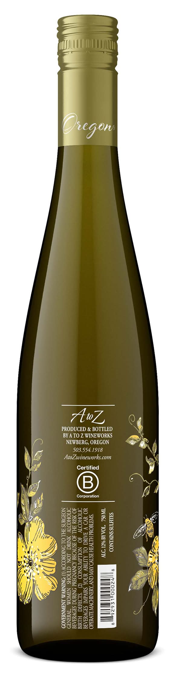 From the first pour to the last sip, the A to Z Wineworks Oregon Riesling embodies the spirit and taste of Oregon's vineyards. With its luminous light-yellow tint accented by a lime green undertone, this white wine evokes springtime in Oregon, with aromas of honeysuckle, hibiscus, and apple-blossom. On the palate, layers of apricot, white peach, and lime zest harmoniously meld, narrating tales of fertile soils and ocean-kissed breezes. Recognized multiple times as a Top 100 Best Buy by Wine Enthusiast, the A to Z Wineworks Oregon Riesling showcases the dedication and artistry that goes into nurturing each vine and grape. Whether paired with a sumptuous meal or enjoyed on its own, this Oregon Riesling wine promises a taste experience as vast and varied as the Oregon terrain itself. Each bottle is 750 mL and has 12% ABV. Join us in raising a glass to honor, tradition, and unparalleled taste. • Alcohol by volume: 12% • 2020
