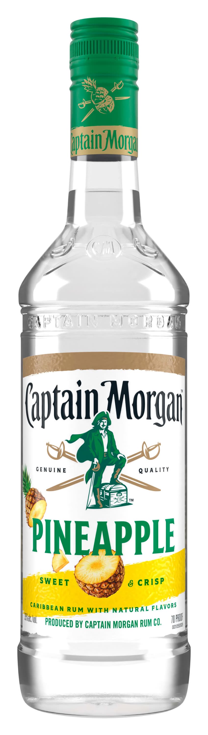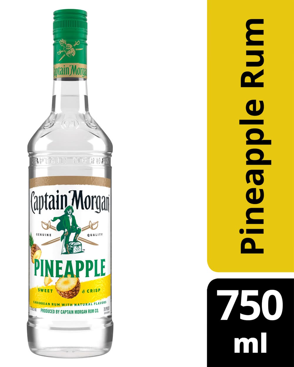 Captain Morgan Pineapple is fruity and ripe for splashing into tasty mixers and colorful cocktails. This 70 proof Captain Morgan Pineapple is best enjoyed at a backyard BBQ with all the crew. Dash into a classic rum punch recipe for an even fruitier twist or keep it breezy with a simple Captain Morgan Pineapple and Pineapple Juice - for those who like their pineapple with a side of pineapple. Includes one 70 proof 750 mL bottle of Captain Morgan Pineapple (Caribbean Rum with Natural Flavors). • Flavor: Pineapple • Alcohol by volume: 35%
