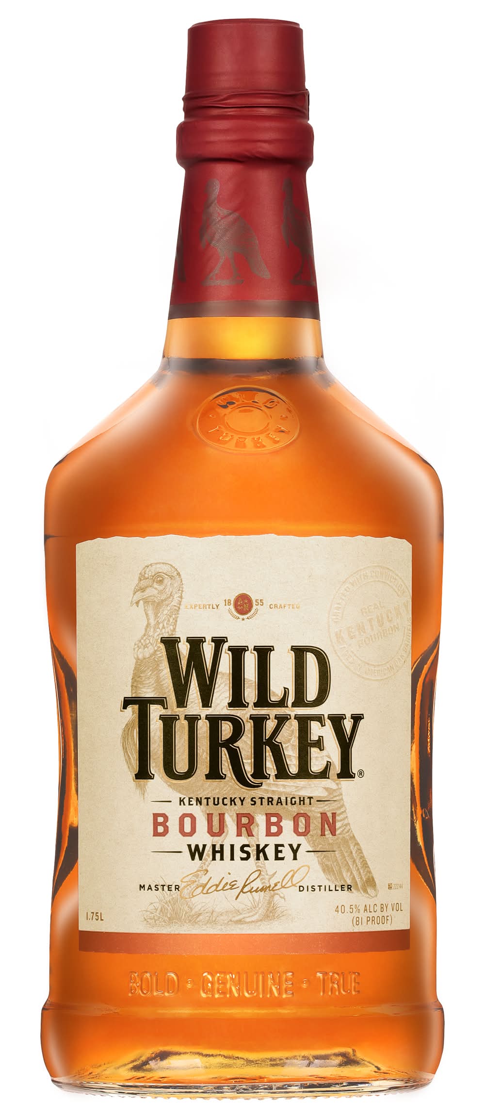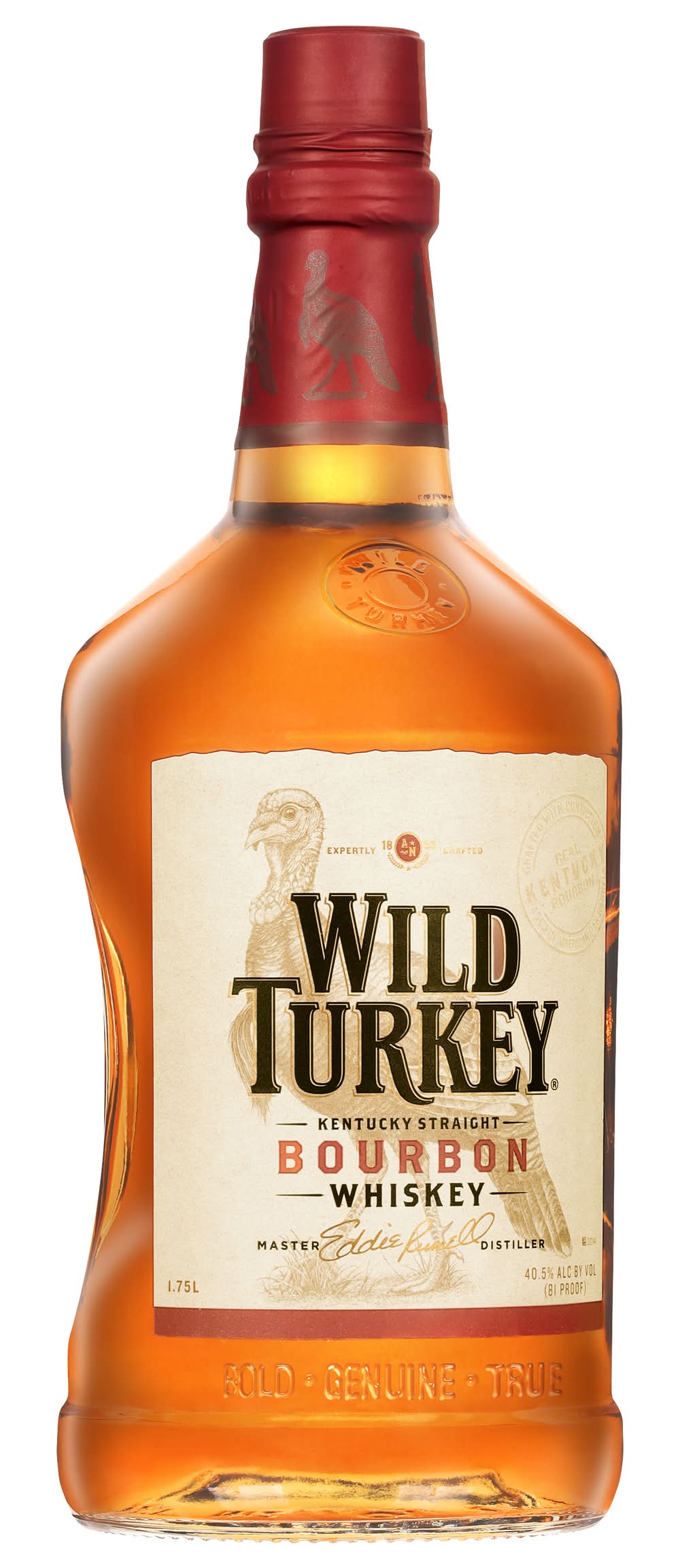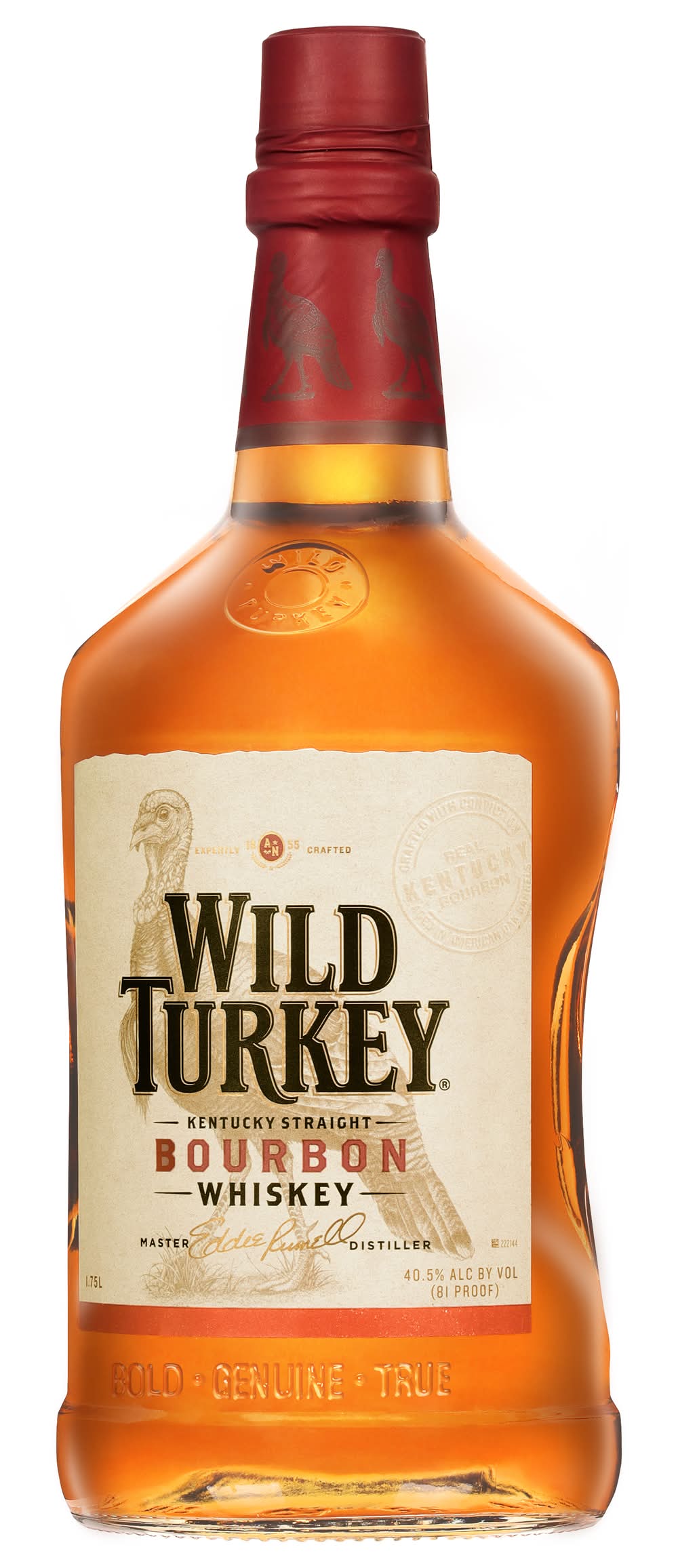 Originally crafted by Kentucky Bourbon Hall-of-Famer Eddie Russell as Wild Turkey 81, Wild Turkey Bourbon is aged in American White Oak barrels with the deepest, No. 4 alligator char. Alcohol by volume: 40.5%
