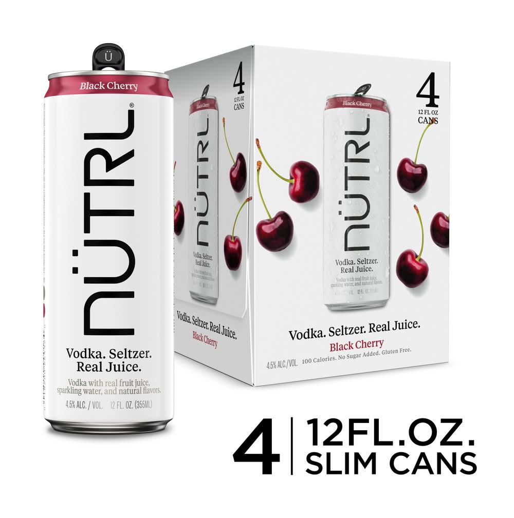 NÜTRL Real Juice Vodka Seltzer, Black Cherry (4 x 12 fl oz)