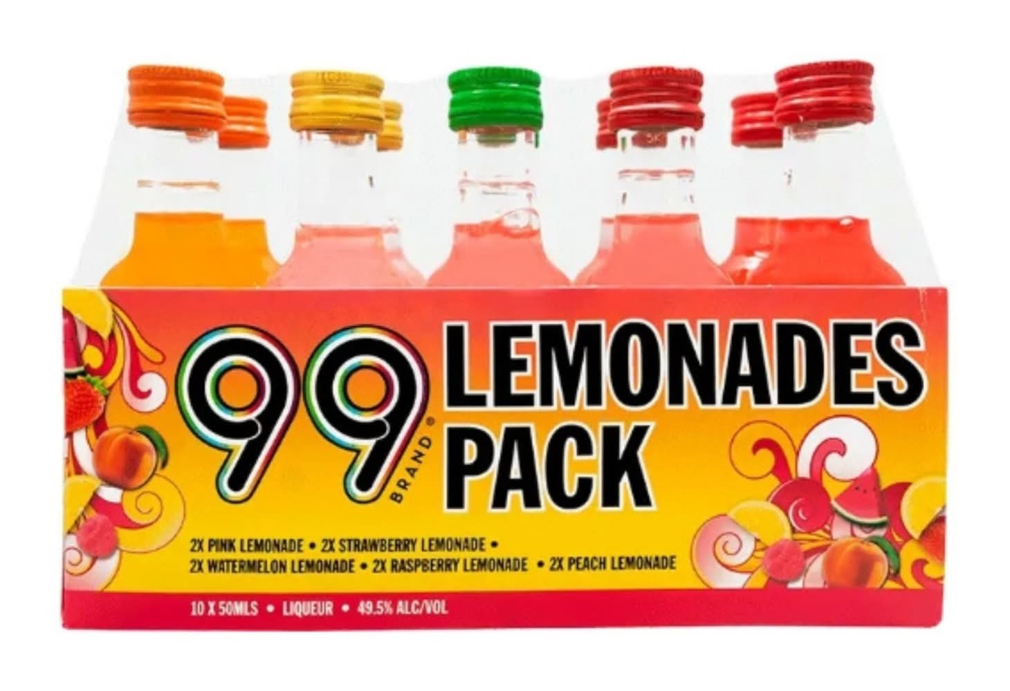 these high-proof mini bottles are perfect for parties, gifting, sharing, or sampling with friends. Experience five refreshing lemonade varieties: pink, strawberry, peach, watermelon, and raspberry. Enjoy straight as shots or mix into creative cocktails. Store in a cool, dry place. • Flavor: Assorted • Pack size: 10 • Alcohol by volume: 49.5%