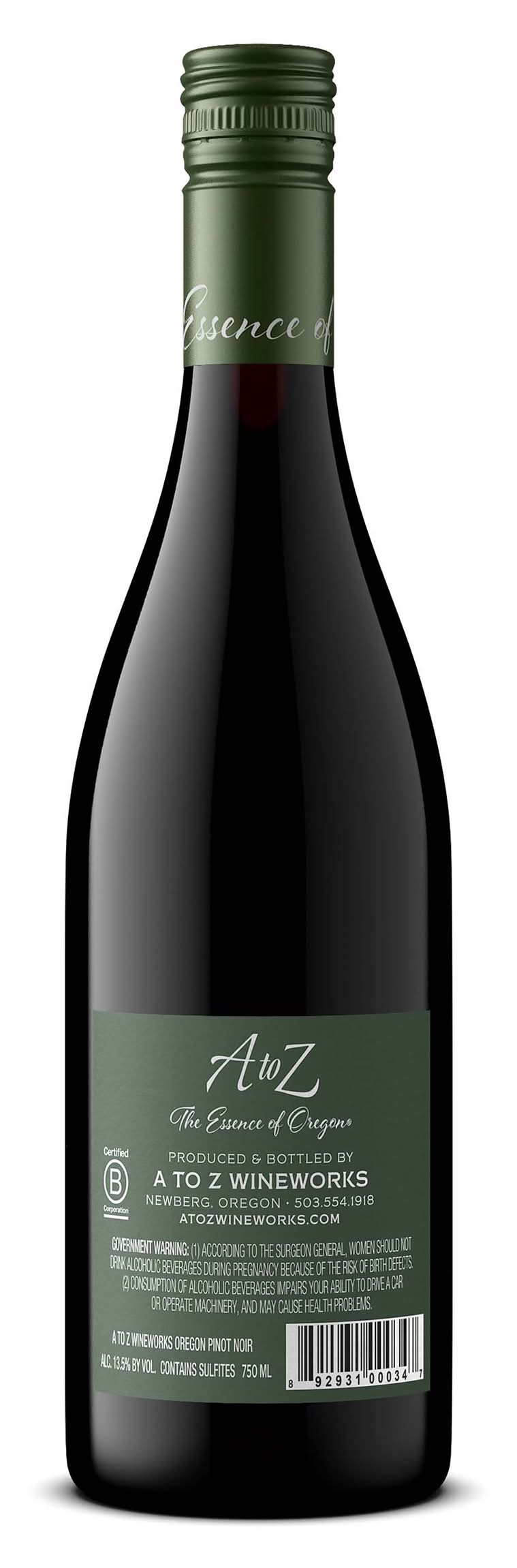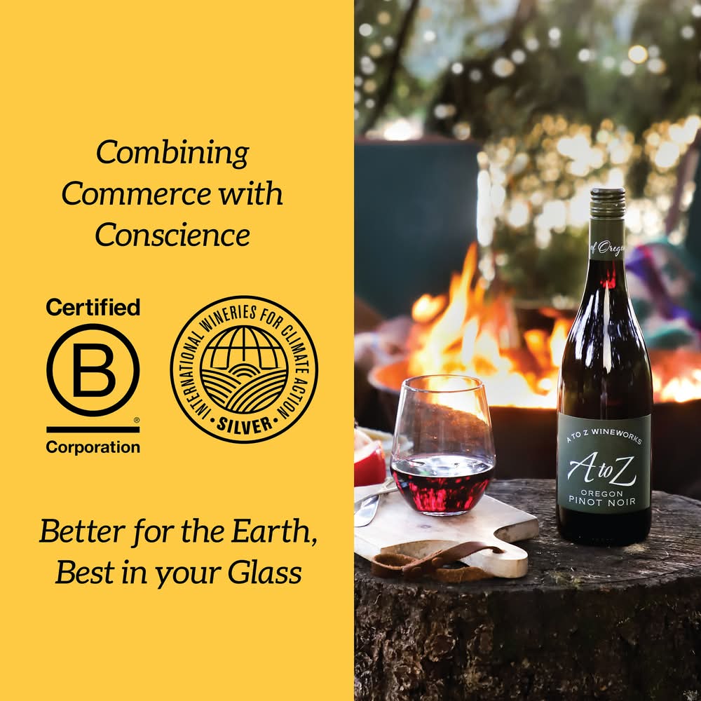 A to Z Pinot Noir greets with a generous assembly of ripe black cherries, blackberries, strawberry jam, and pomegranate, layered with a touch of oak, vanilla, nutmeg, and black tea leaves. Round, juicy, and fresh, the wine has a balanced acidity, lending to the intensity of flavors. A true representation of cool-climate wine, it serves as a great option for new or long-time Pinot Noir lovers. Its complexity and depth result from diverse sourcing across Western Oregon's dynamic growing regions. This medium-bodied Pinot Noir seamlessly pairs with a variety of dishes, from savory meats to earthy vegetables. Recognized twice as a "Top 100 Wine" by Wine Spectator, A to Z Pinot Noir is a go-to classic that will complement all occasions. • Alcohol by volume: 13.5% • 2018
