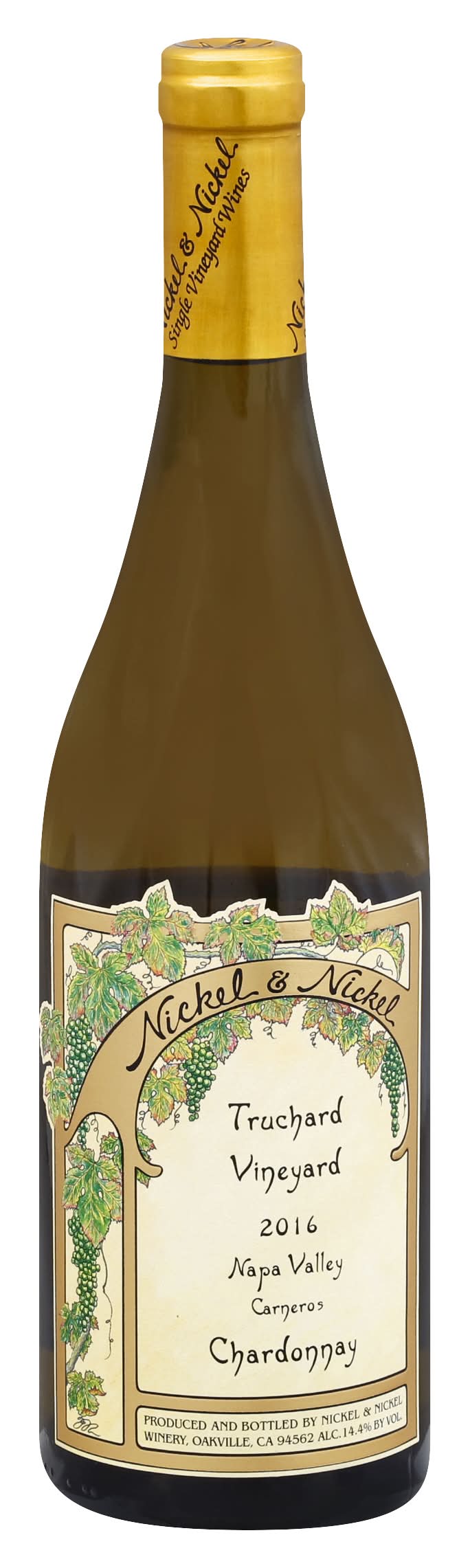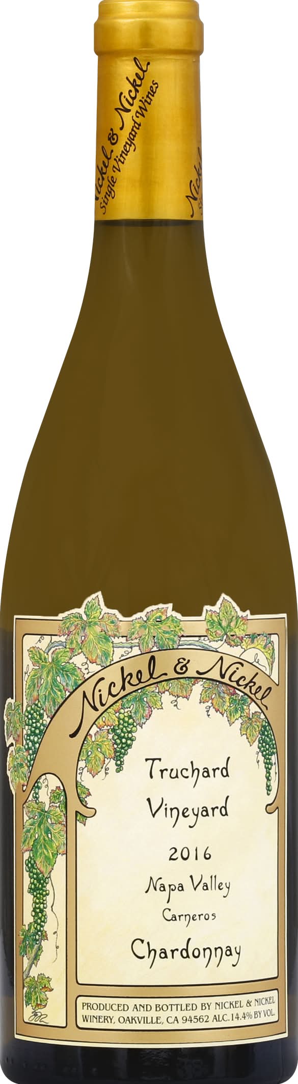Nickel & Nickel was founded by the partners of Far Niente, with a mission to focus exclusively on producing 100% varietal, single vineyard wines. Truchard Vineyard lies in the heart of Carneros, prized for its rolling hills, sun exposure and cool, breezy conditions that allow long, even ripening. This Chardonnay offers ripe, tropical fruit character and fullness on the palate, accented by mineral notes and vanilla and spice from the oak. The lovely texture of this wine is supported by a firm core and bright acidity that meld into the wine's lengthy, flavorful finish. Label design by Tom Rodrigues. Alc. 14.4% by vol. Alcohol by volume: 14.4%