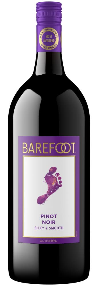 Barefoot Pinot Noir Red Wine features fruit forward notes of black cherry and wild raspberry in a large bottle. With light brown spice aromas and a silky smooth finish, this California red wine is ideal for backyard barbecues and casual gatherings with friends. Best served slightly chilled or at room temperature, this medium bodied Barefoot wine pairs perfectly with a wide variety of foods. This Pinot Noir wine comes from Barefoot, the most awarded wine brand in US competitions. Alcohol by volume: 13.5%
