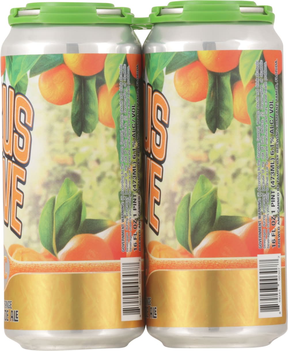 Beer, Fruited Blonde Ale, Citrus Grove, Tangerine & Orange • Pack size: 4 • Alcohol by volume: 4%