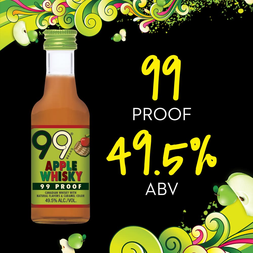 Liven up your experience with the exciting . With 27 cordials flavors and growingThese liqueur shots are an amazing way to celebrate the good times and chill vibes. Each bottle of Whiskey has zero sugar and 155 calories per 1.5 ounce shot. Abe enjoyed straight out of the bottle as shots for a burst of tasty apple whiskey flavor. Perfect for any party or celebration with friends, Whiskey tastes great in a multitude of spectacular alcoholic beverages, cocktails and mixed drinks. Add a splash to your seltzer for a full flavor explosion or combine this apple flavored whiskey liqueur shot with other , like 99 Bananas, to make a variety of delicious alcoholic beverages. at room temperature or pour it from your freezer for an icy shot. Live life in color with. Please drink responsibly. • Flavor: Apple • Alcohol by volume: 49.5%