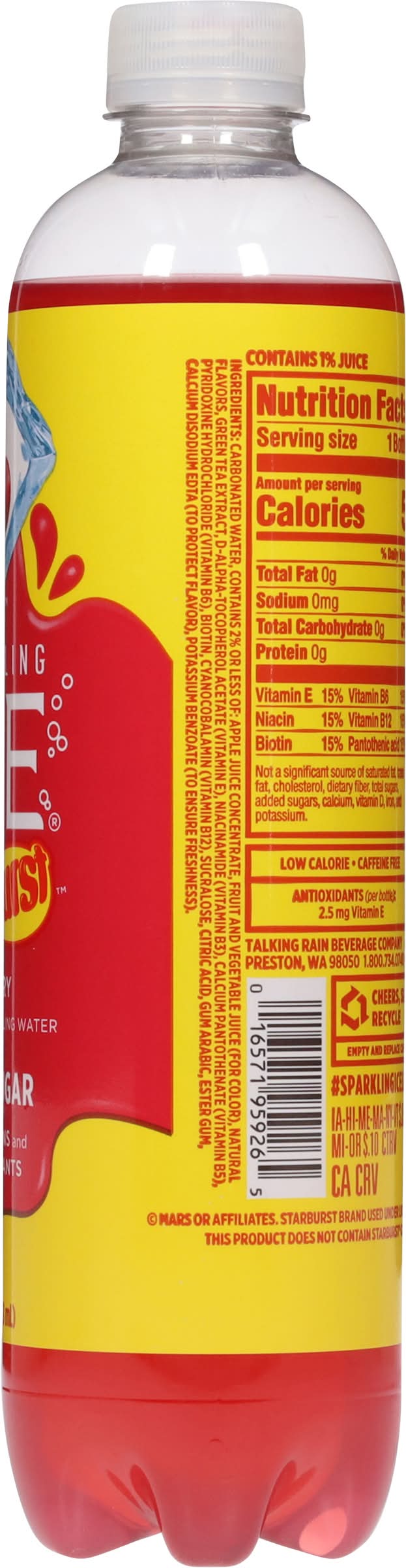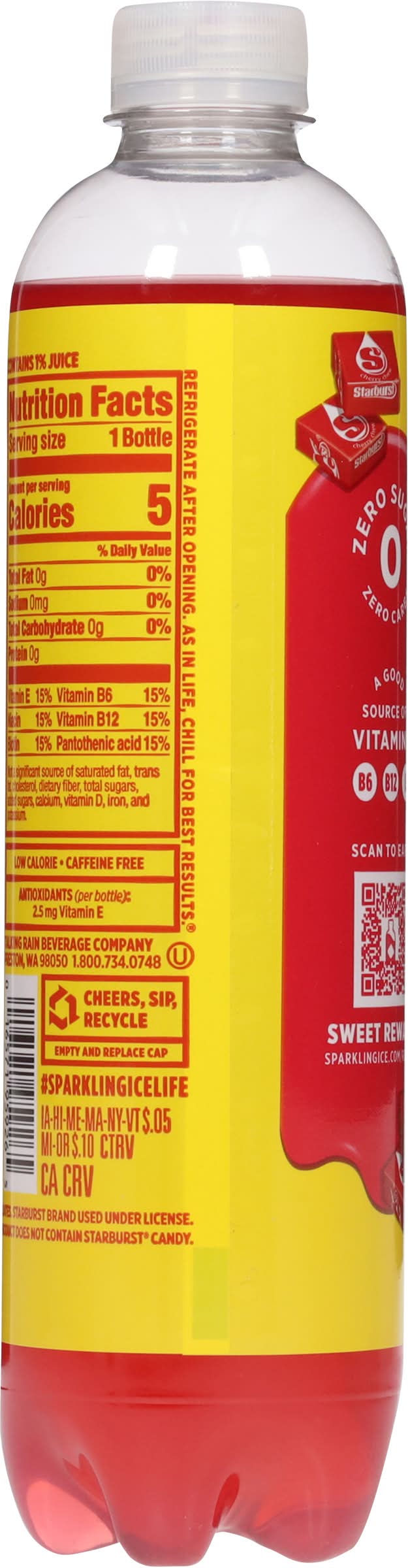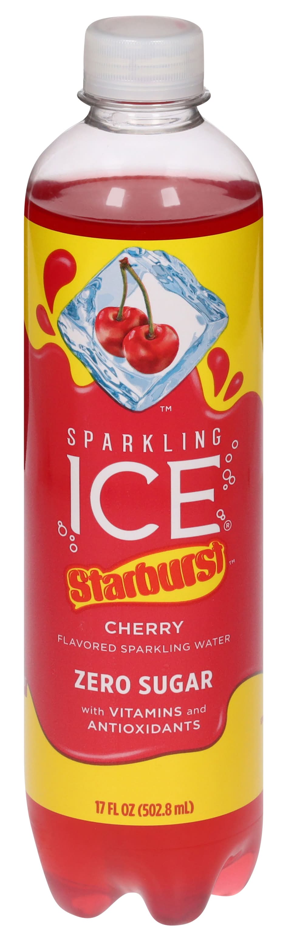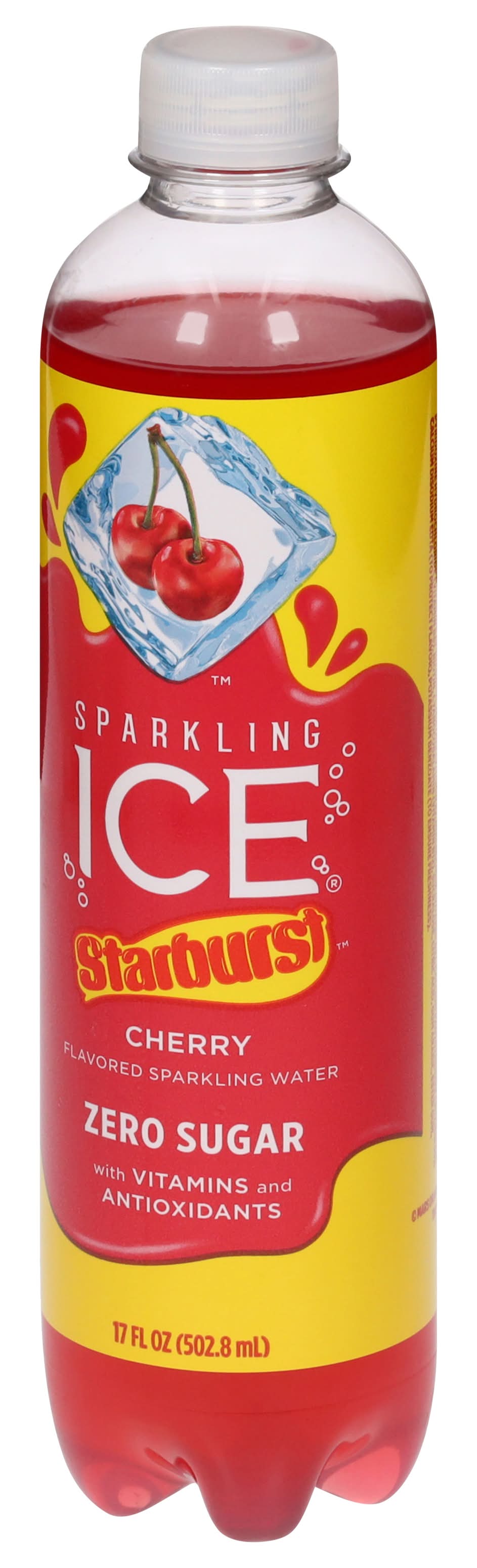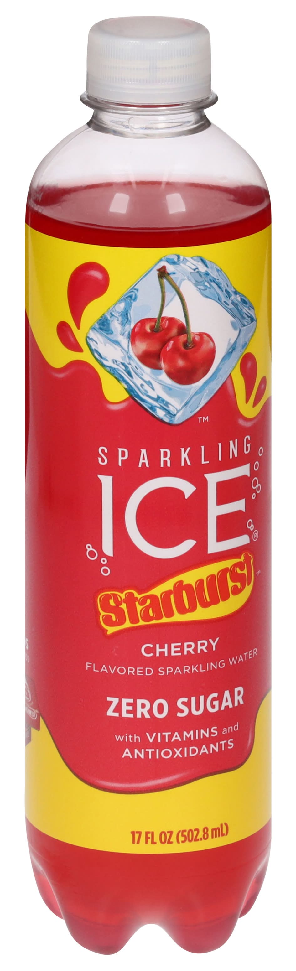 Cherry flavored sparkling water. Antioxidants Zero sugar. With vitamins and antioxidants. Zero carbs. A good source of vitamins B6, B12, E. Low calorie. Caffeine free. This product does not contain Starburst candy. • Flavor: Cherry • Packaging: Reusable