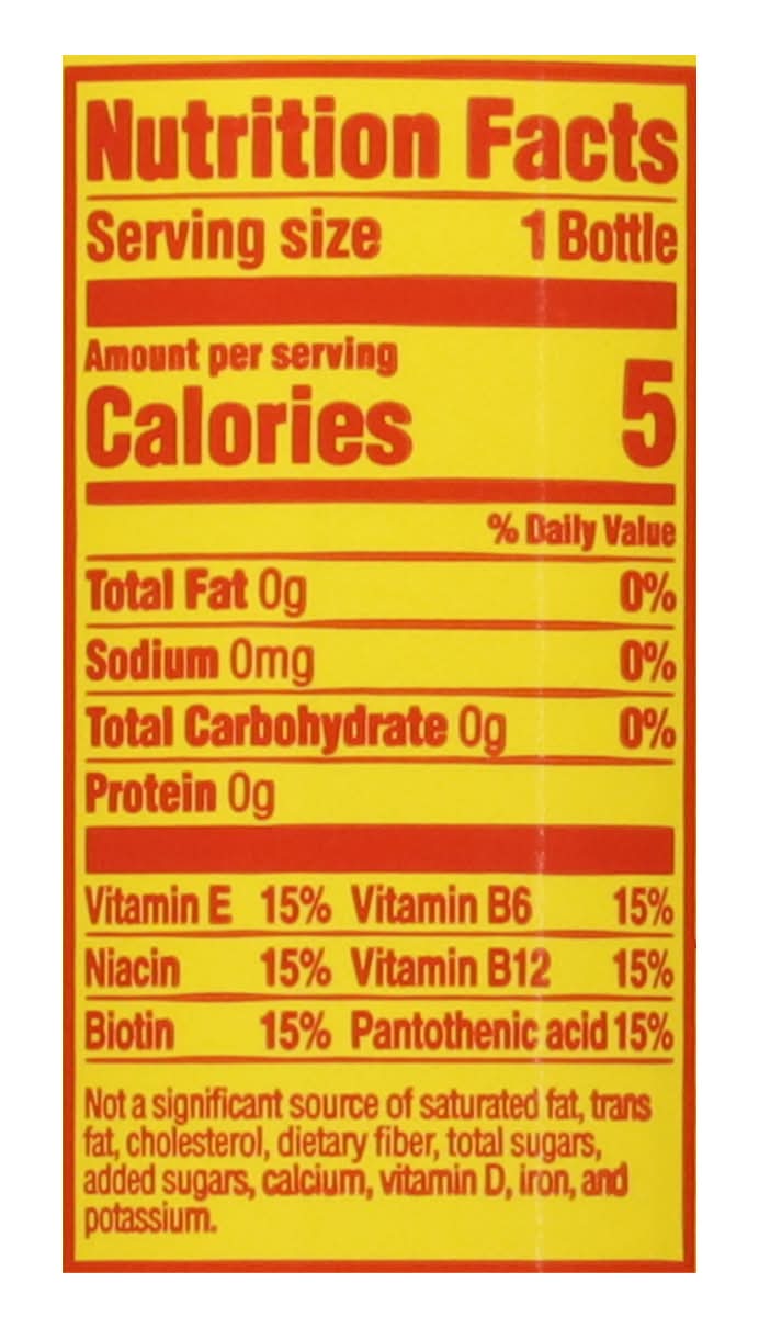 Ingredients: Carbonated Water, Contains 2% or Less of: Apple Juice Concentrate, Fruit and Vegetable Juice (for Color), Natural Flavors, Green Tea Extract, D-Alpha-Tocopherol Acetate (Vitamine), Niacinamide (Vitamin B3), Calcium Pantothenate (Vitamin B5), Pyridoxine Hydrochloride (Vitamin B6), Biotin, Cyanocobalamin (Vitamin B12), Sucralose, Citric Acid, Gum Arabic, Ester Gum, Calcium Disodium EDTA (to Protect Flavor), Potassium Benzoate (to Ensure Freshness)