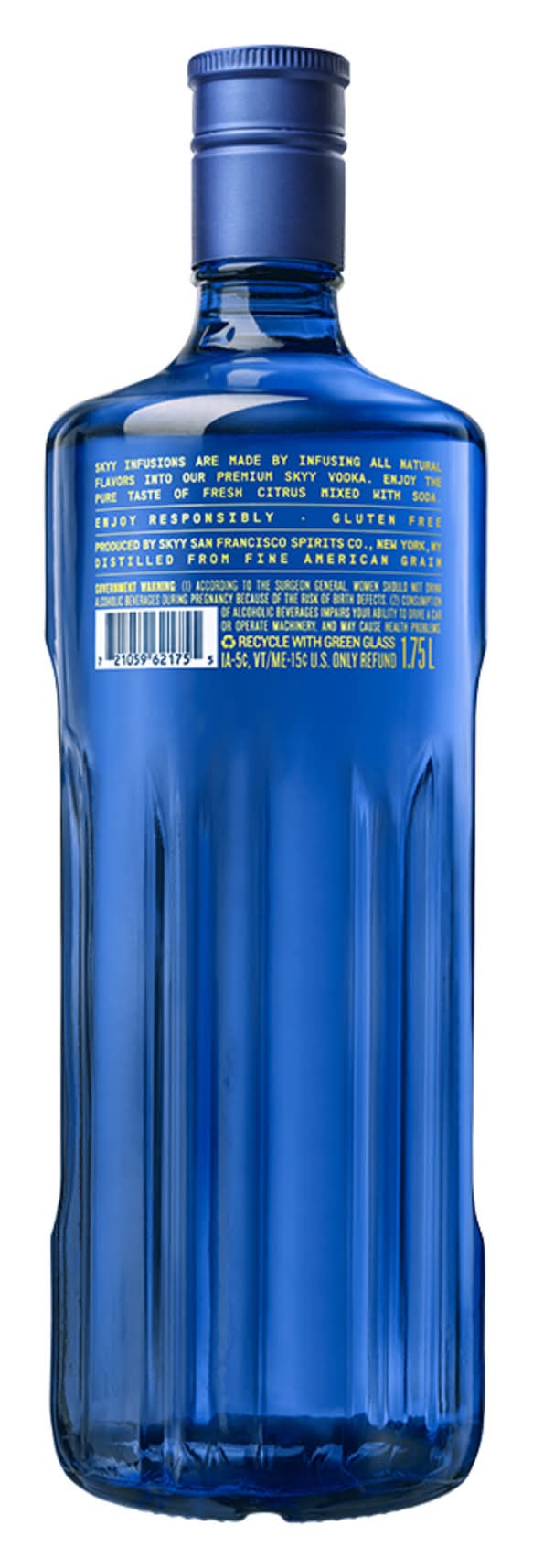 SKYY® Infusions was created to capture the true flavor of the fruit, using only natural flavors during the infusion process. • Flavor: Citrus • Alcohol by volume: 35% • Packaging: Reusable