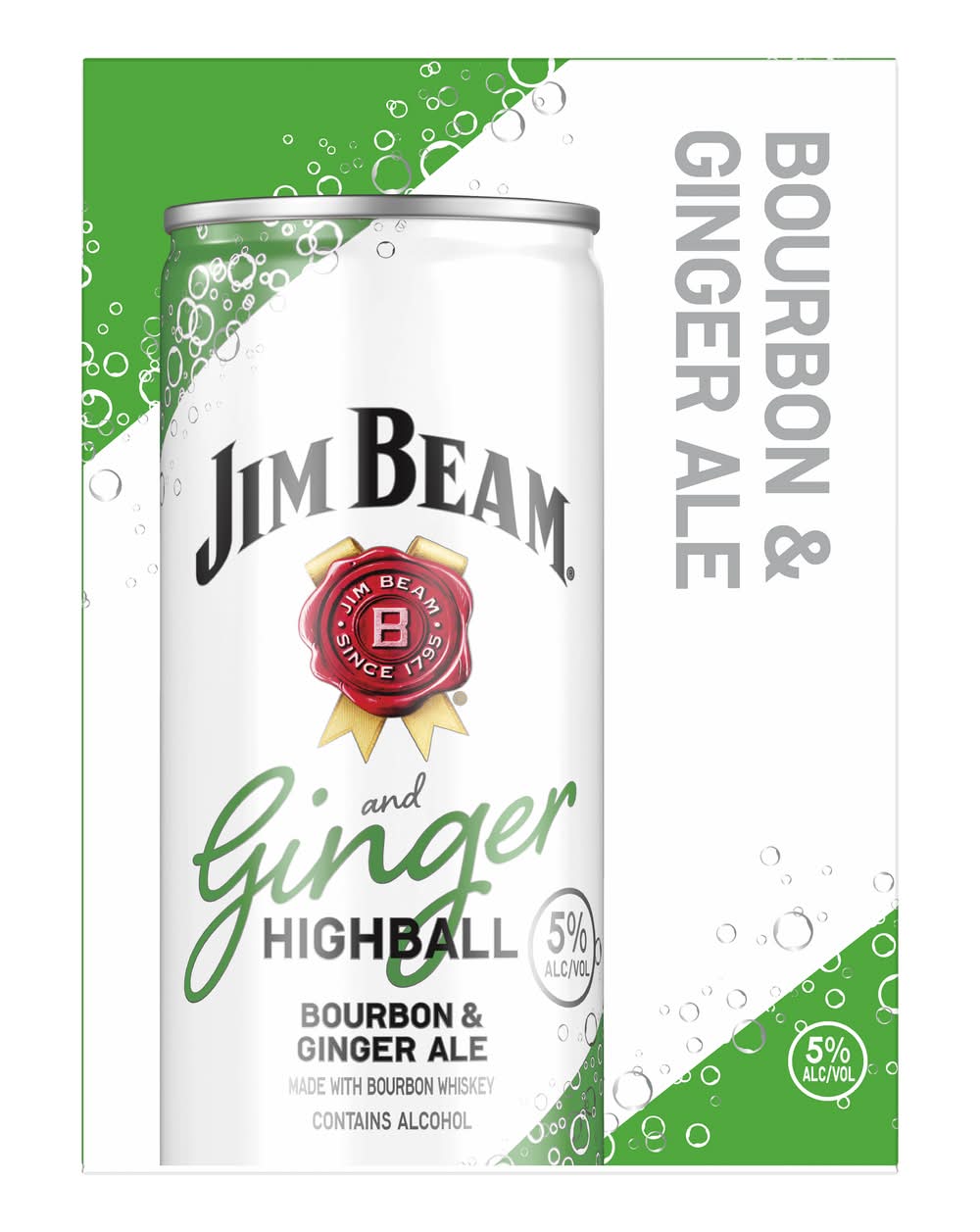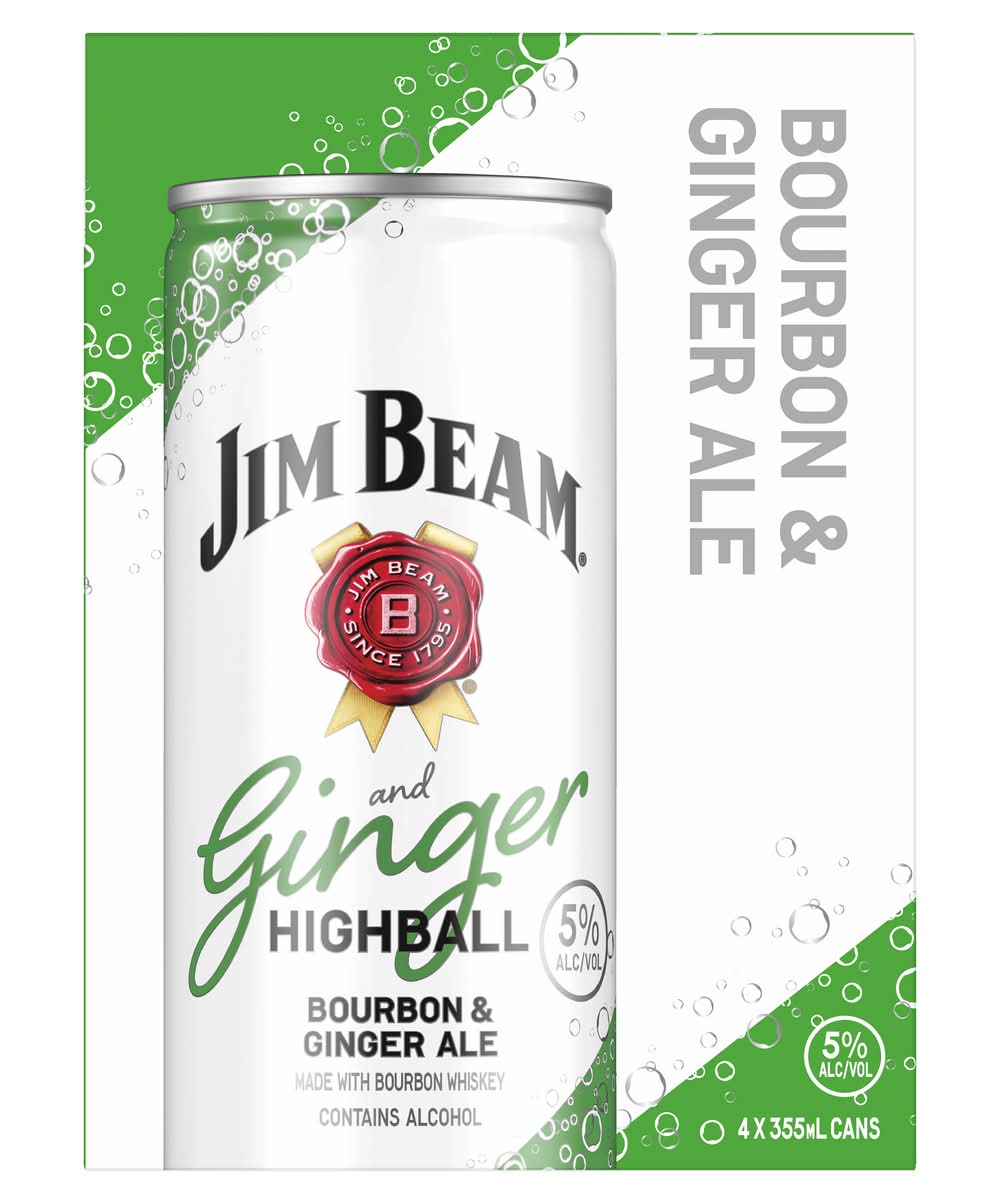 The delicious flavor of the Jim Beam Ginger Highball is now available as a ready to drink cocktail. The sweet and luscious oaky flavorings of Jim Beam is balanced with bold ginger ale. The finish is sweet with subtle hints of vanilla and oak. Alcohol by volume: 5%
