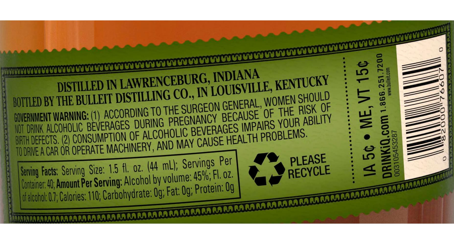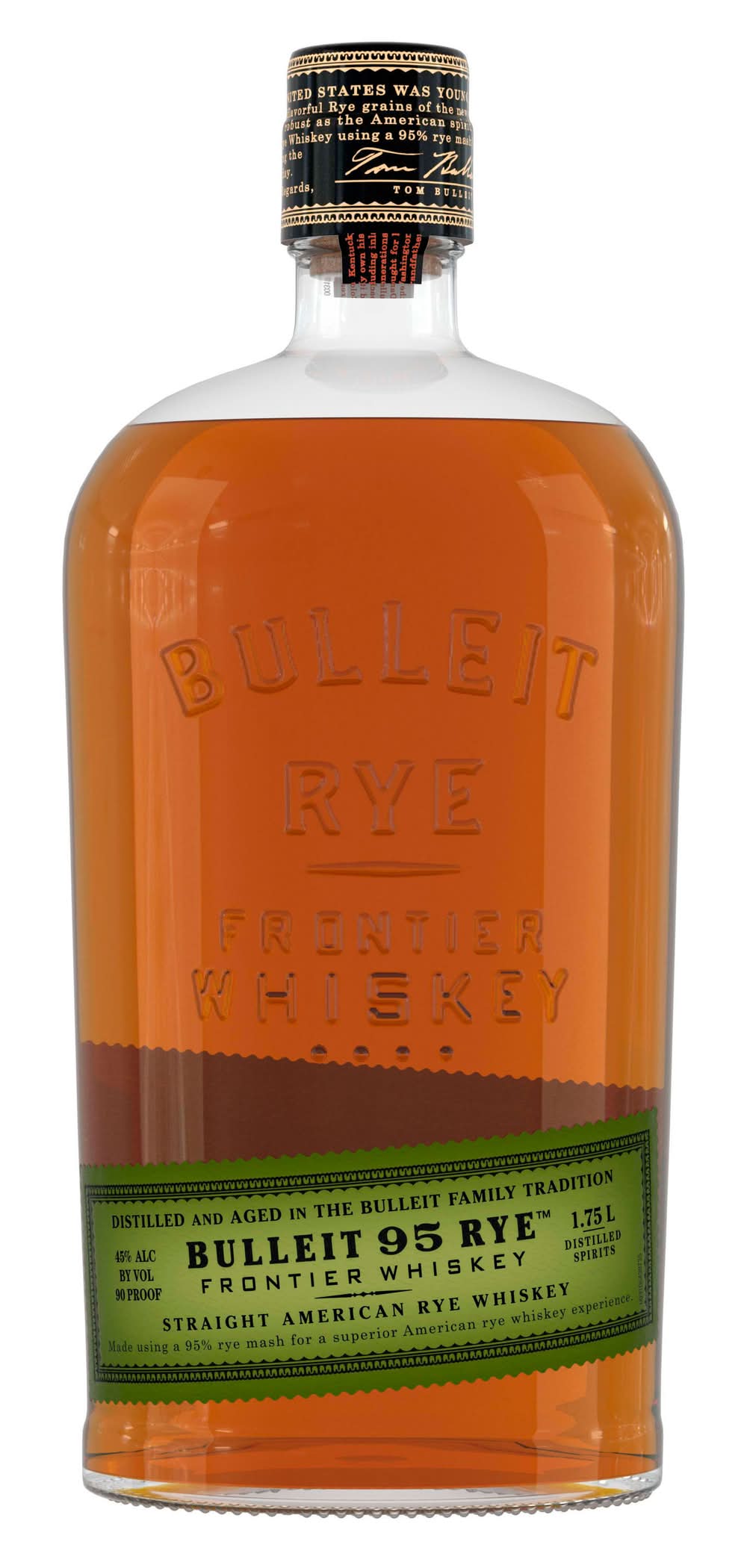 Savor the bold, spicy character of Bulleit 95 Rye Whiskey. With its russet color and aromas of biscuit, spice, and dried apricot, our straight rye whiskey makes a good first impression before it's even opened. Its distinctive taste leads into a generous finish that is long, satiny, and woody with a hint of light toffee. The flavor profile of our rye whiskey allows you to enjoy its clean finish that lingers long after the final sip. Bulleit 95 Rye Whiskey earned a Gold medal at the 2021 San Francisco World Spirits Competition. Perfect for a classic Manhattan cocktail. Includes one 90-proof 1.75 L bottle of 95 Rye Whiskey. Please drink responsibly. • Alcohol by volume: 45% • Bulleit Distilling Company, 1151 Canal Street, Louisville, KY 40204 • Packaging: Reusable