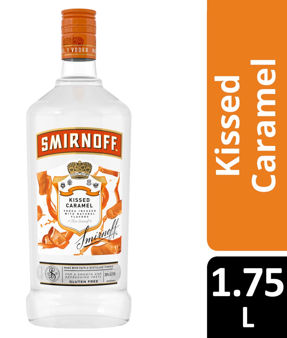 Indulge in the decadent flavor of caramel with Smirnoff Kissed Caramel. Infused with the confectionary taste of salted caramel, this gluten-free and Kosher Certified spirit is perfect for after-dinner drinks and is smooth enough to be enjoyed neat. Perfect for those cozy evenings and dessert pairings, the versatility of Smirnoff Kissed Caramel adds a layer of decadence to any occasion. Includes one 60 proof 1.75 L bottle of Smirnoff Kissed Caramel. Please drink responsibly. Alcohol by volume: 30%