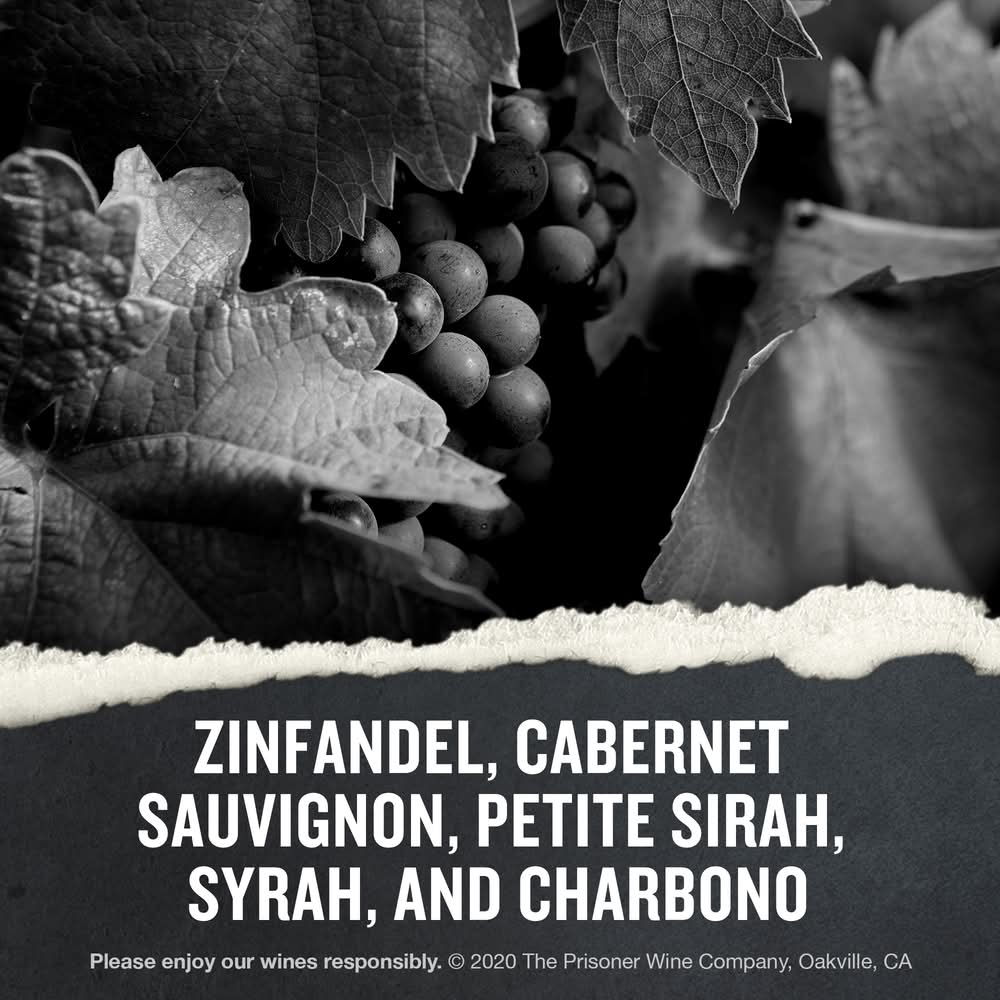 The Prisoner Red Wine Blend offers aromas and flavors of raspberry, vanilla, coconut, blackberry, and pomegranate with a luscious finish. Enjoy this dark red wine with grilled meats or on its own. • Alcohol by volume: 15.2% • 2022