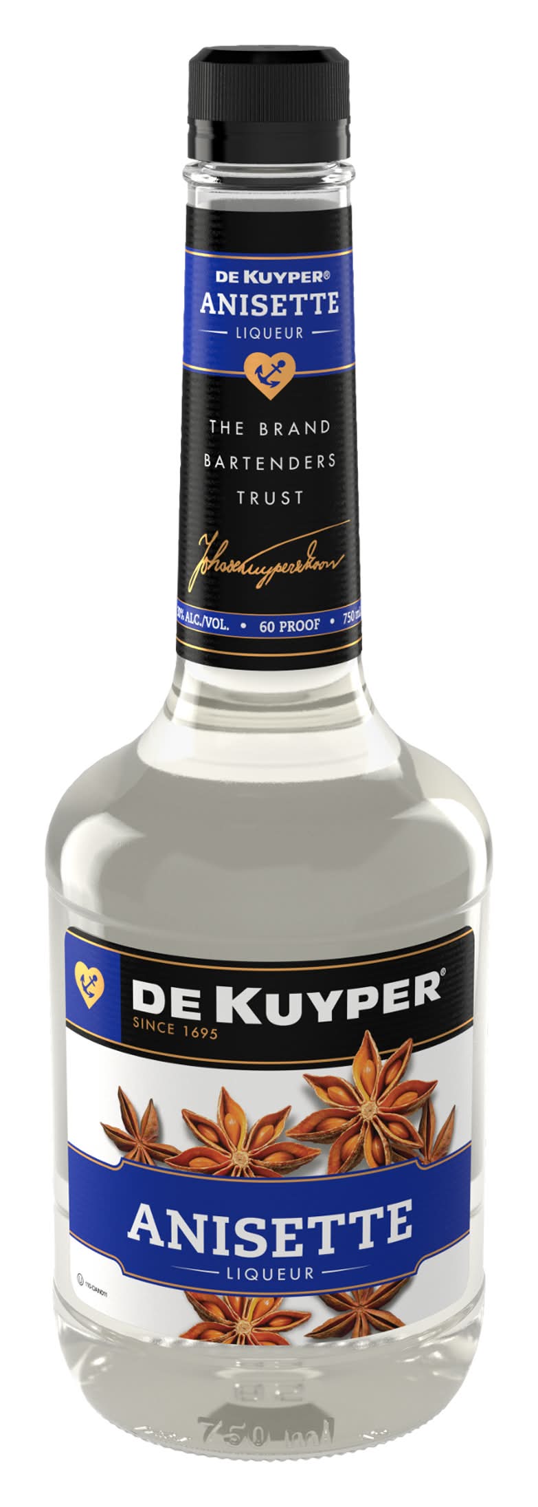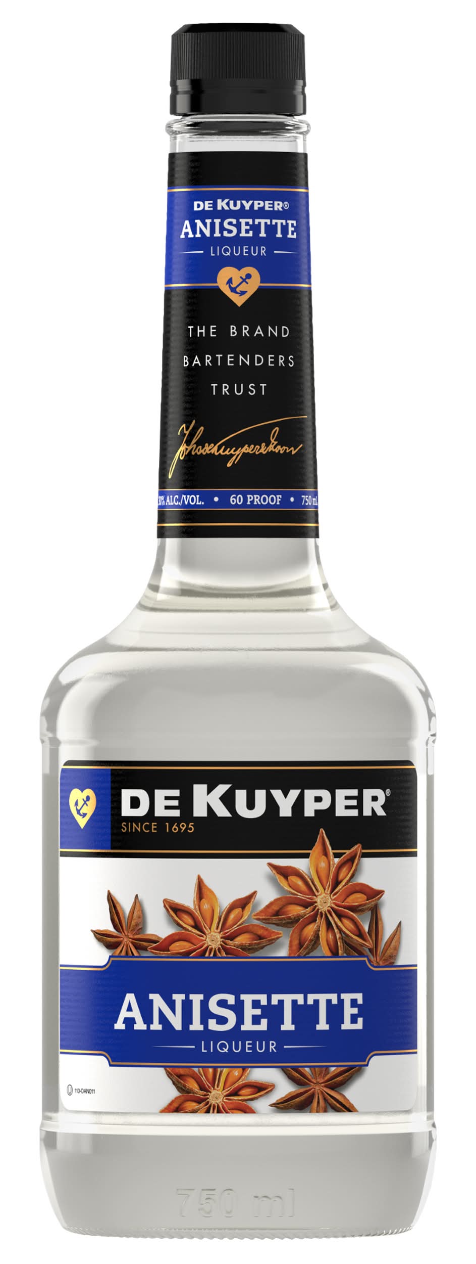 Prized in ancient times for medicinal properties, the aniseed in DeKuyper Anisette adds an exotic palate to traditional as well as modern cocktails. Distilled with imported aniseed and blended with fine neutral spirit, this liqueur's fresh black licorice flavor shines through. With its rich, deep flavor, Anisette makes a perfect addition to after-dinner cocktails. Update the classic Martini as a Black Anisette Martini, adding DeKuyper Blackberry and Vanilla with vodka, lime juice and muddled fresh blackberries, balancing sweetness with its distinctive flavor. With a heritage dating back more than 300 years, DeKuyper Cordials & Liqueurs continues to be on the cutting edge of the spirits industry. DeKuyper's evolution has been successful through the combination of its rich, traditional expertise with modern innovation, creating mixable and versatile cordials, liqueurs, crèmes, brandies and schnapps made from the world's finest ingredients. DeKuyper has been the brand bartenders trust to add color, flavor and fun to any cocktail. Alcohol by volume: 30%