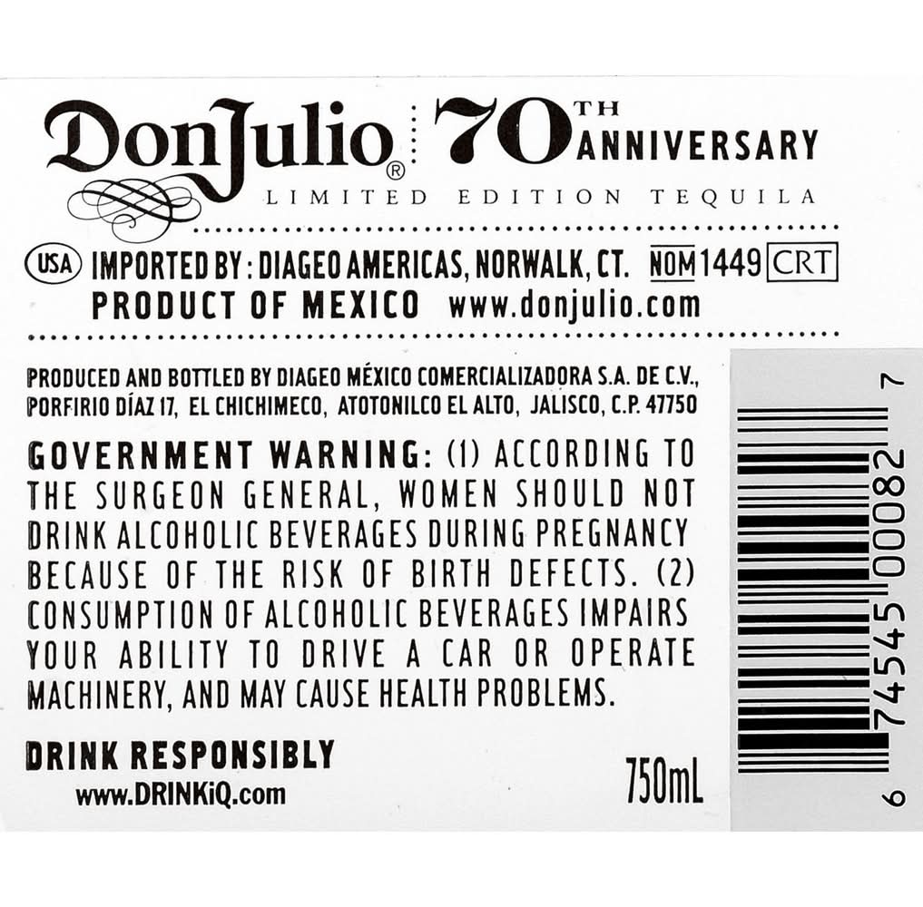 Don Julio 70 Cristalino Tequila is the world’s first Cristalino anejo, created to celebrate Don Julio González’s 70th anniversary of tequila making. Crafted from 100% blue Weber agave and aged for 18 months in American white oak barrels, this premium tequila combines rich complexity with a crisp finish. The innovative charcoal filtration removes color while preserving flavor, offering a smooth, clear tequila with notes of vanilla, honey, and toasted oak. Perfect neat, on the rocks, or in classic cocktails like Margaritas and Palomas. An ideal gift for tequila lovers who appreciate exceptional quality and innovation. • Alcohol by volume: 40% • Diageo, Norwalk, CT